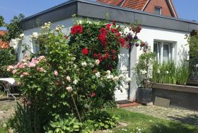 Das gepflegte Einfamilienhaus mit schönem Garten liegt in bevorzugter Wohnlage Neustadts. Der Segelerhafen ist nur wenige Schritte entfernt. Der Ferienbungalow mit Terrasse grenzt an das Wohnhaus der Vermieterin. Frau Held hat einen mittelgroßen Hund.