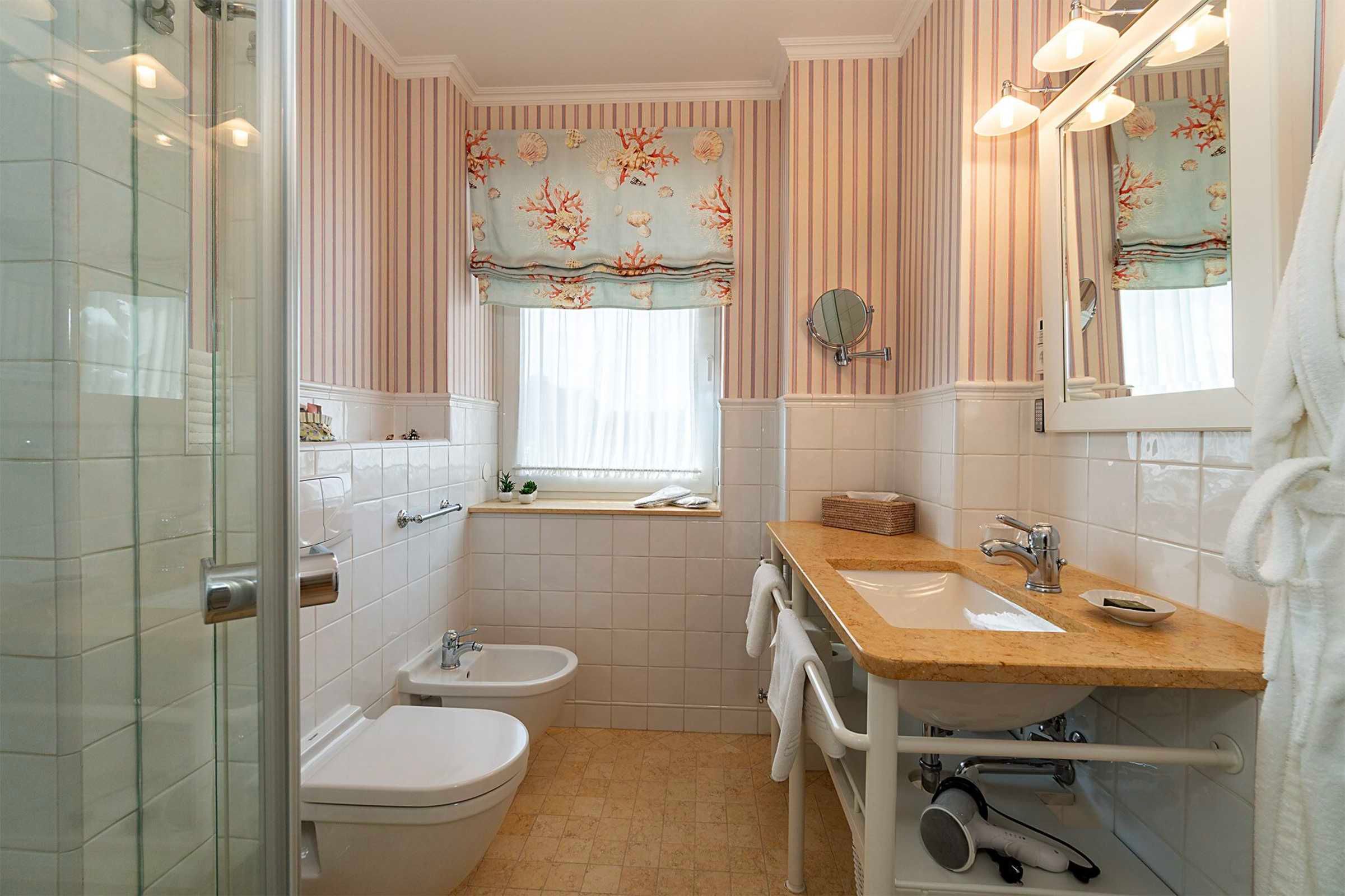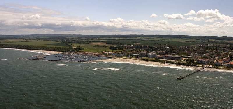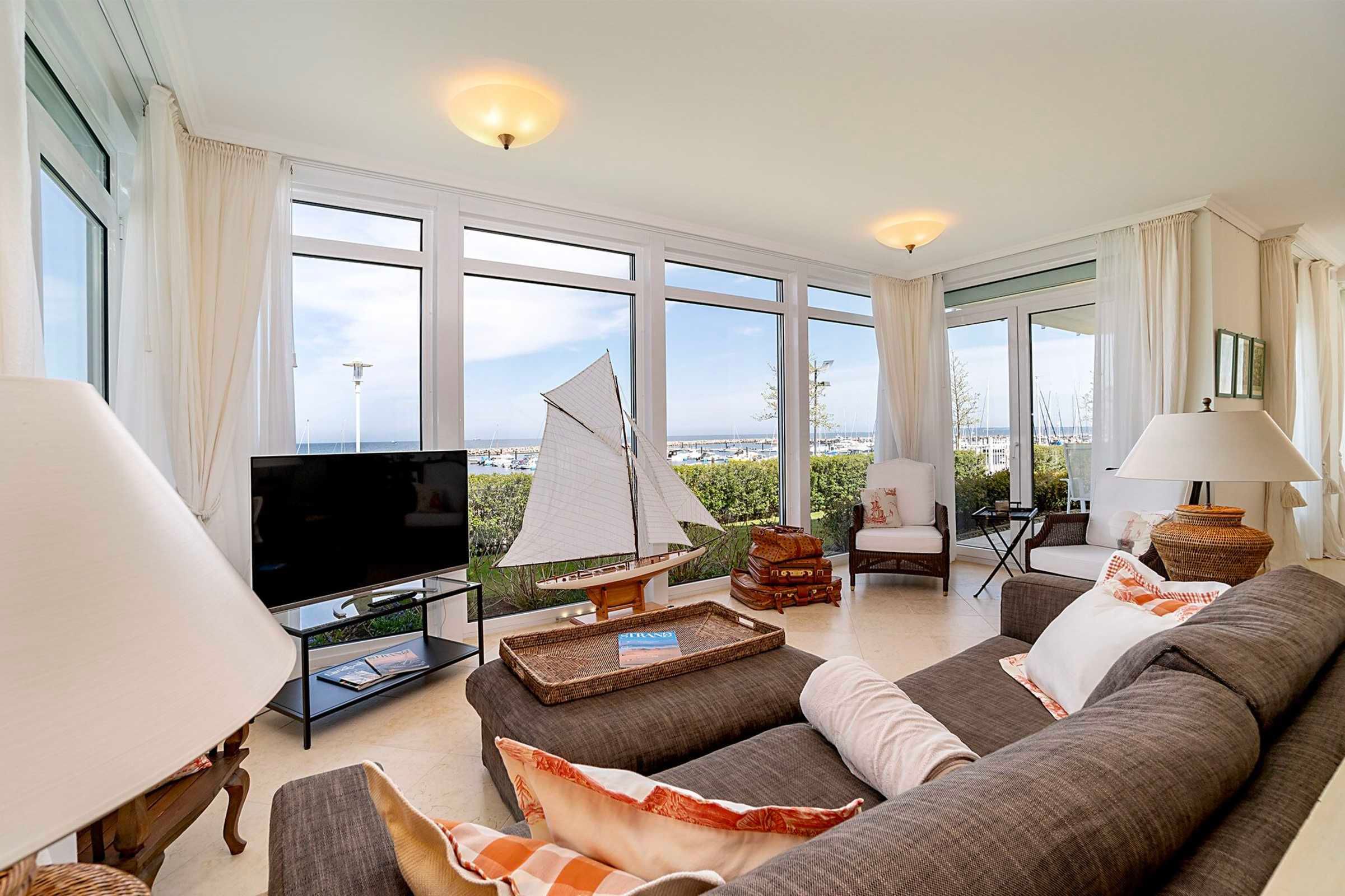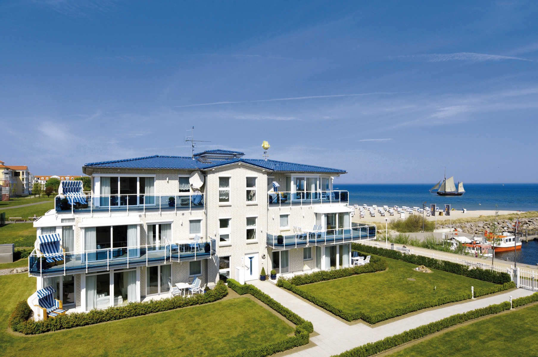 Von der Terrasse aus gelangen Sie in wenigen Schritten zum Hafen - oder quer über die Promenade direkt zum feinsandigen Badestrand, der hier 100 m breit ist. Ideal für Familien und Großeltern!
