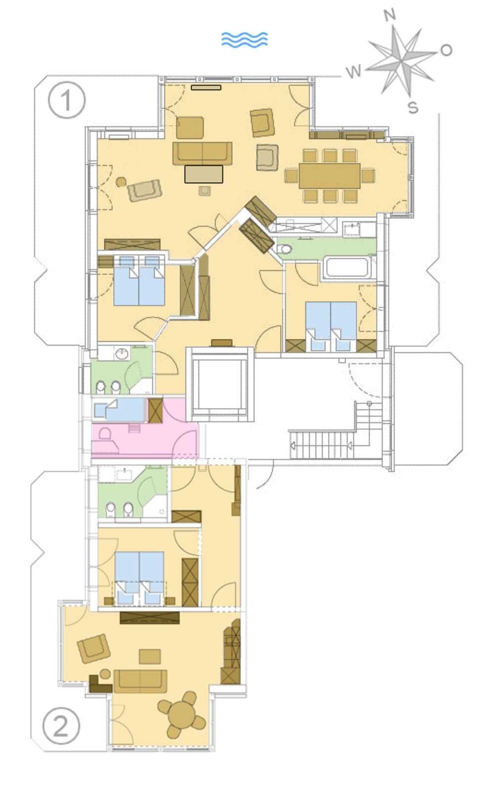 Ein ideales Urlaubsquartier für große Familien mit viel Platz und Komfort für Groß und Klein. Sie haben freie Aussicht bis zum Horizont und können Sonnenauf- und Sonnenuntergänge genießen. Beliebtes Highlight: Der extrabreite Ohrensessel für gemütliche Märchenabende und Kuschelstunden zu zweit.