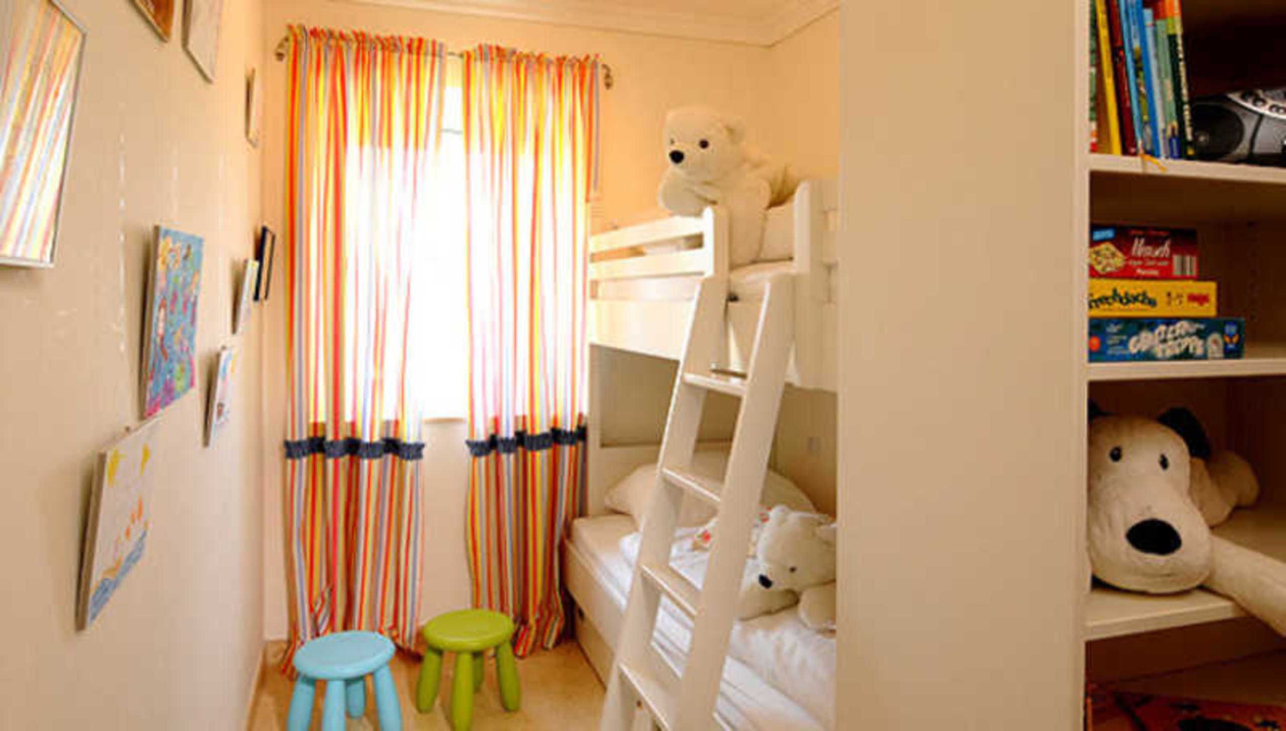 • 1 Kinderzimmer mit stabilem Doppelstockbett ( = im Bedarfsfalle Durchgangszimmer zwischen Wohnung 1 und 2)