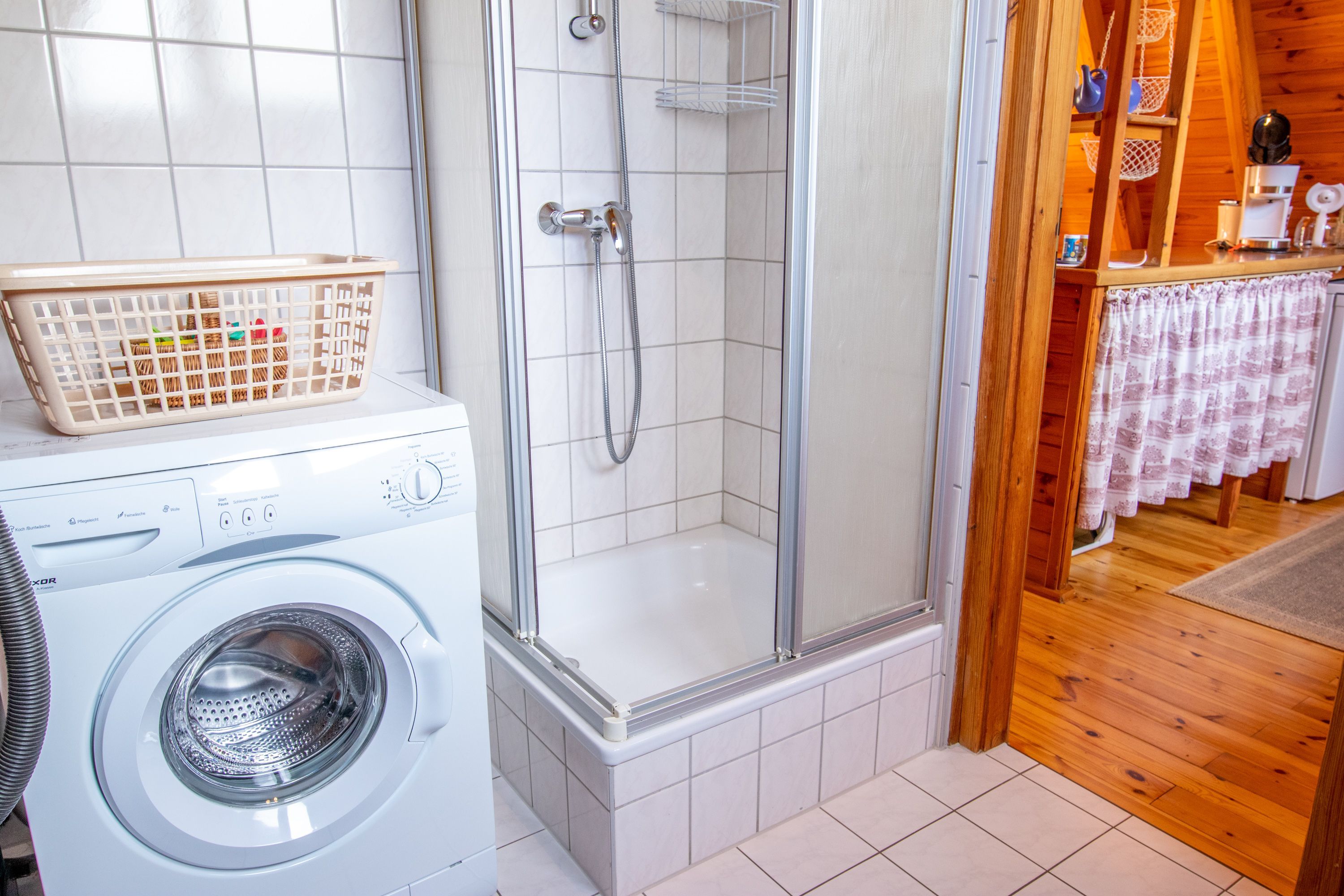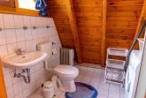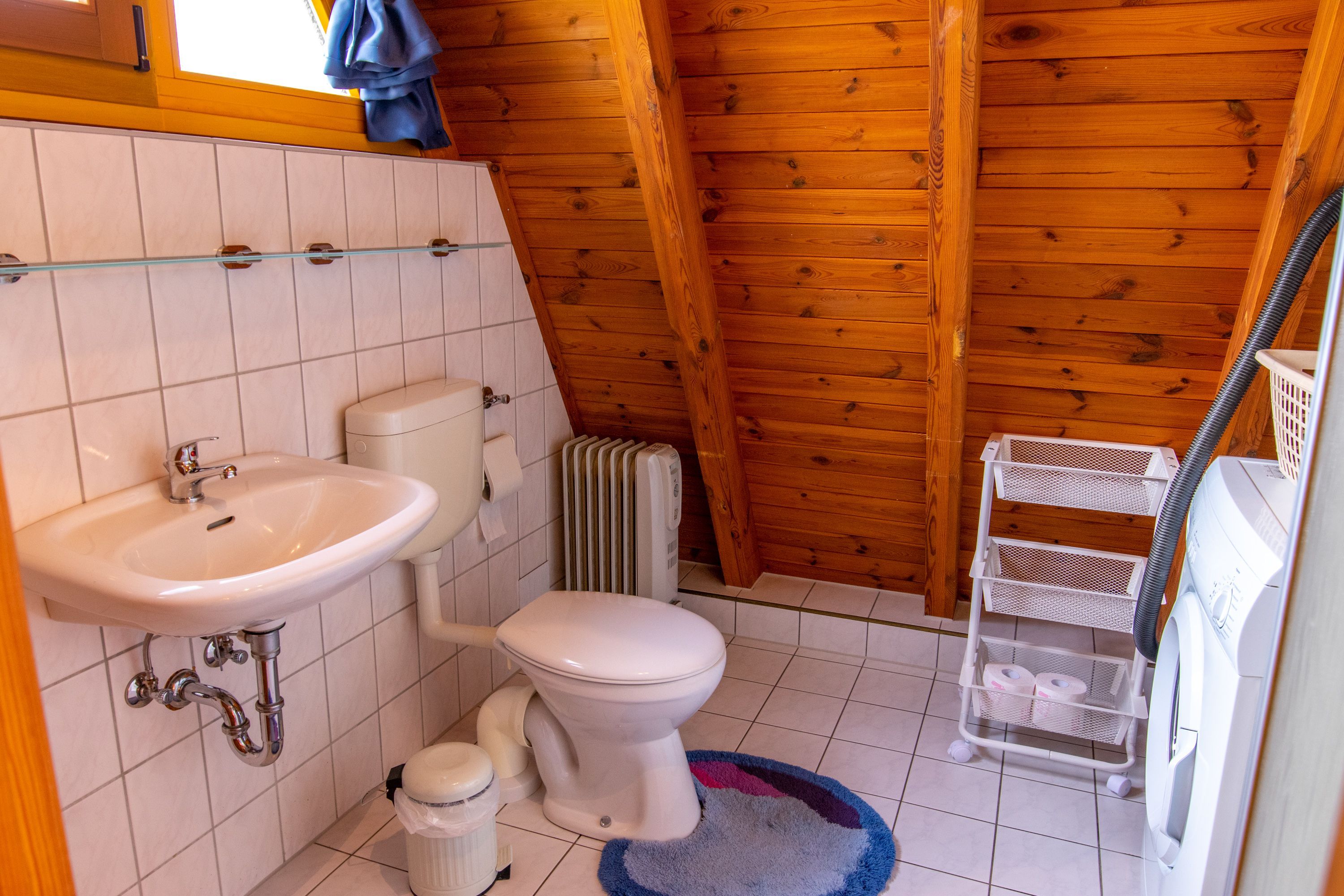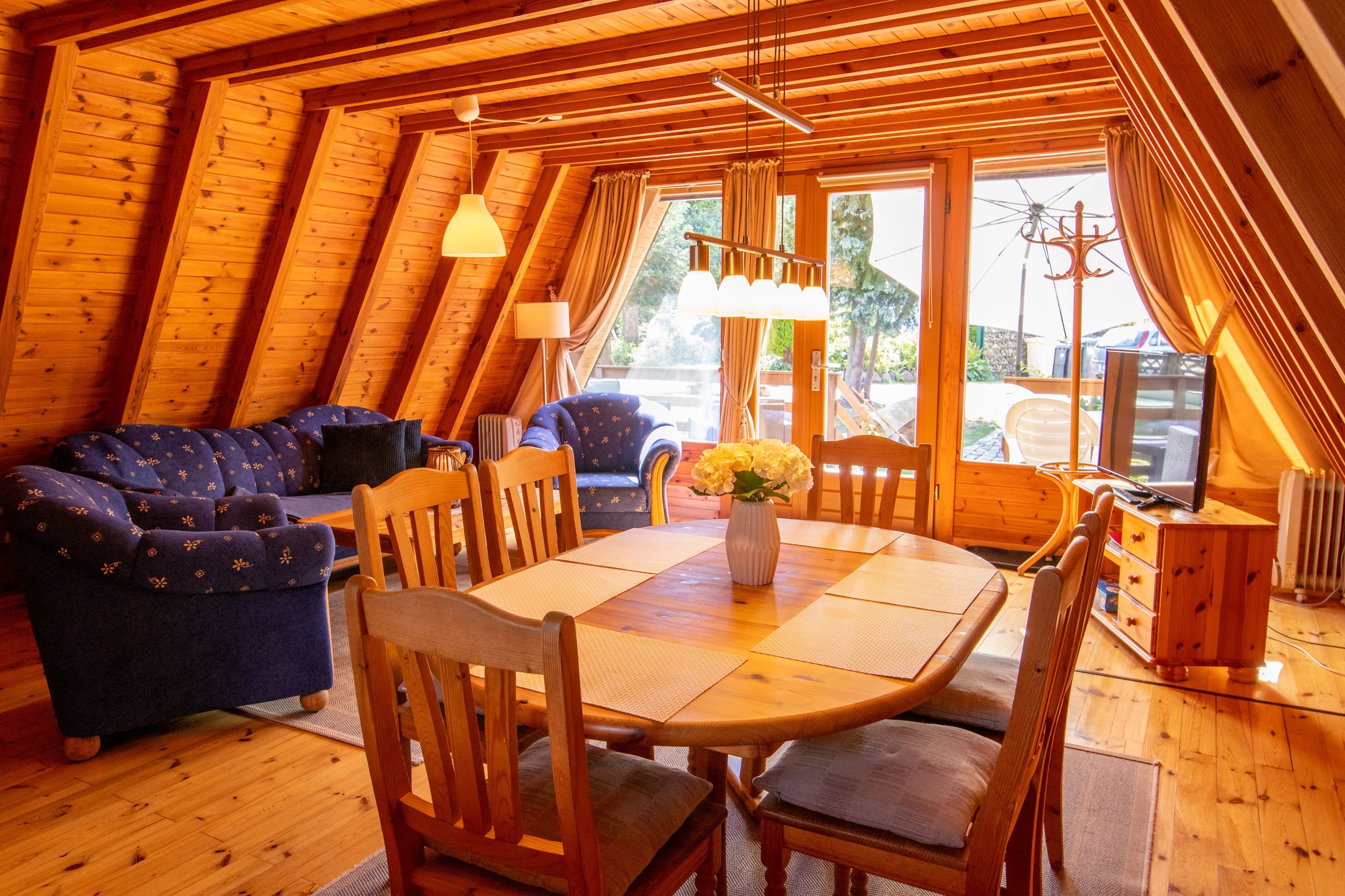Im Erdgeschoss findest du ein geräumiges Wohnzimmer mit TV, einer gemütlichen Sitzecke und einem Esstisch. Die angrenzende offene Küche ist vollständig ausgestattet, inklusive Kühlschrank, Geschirrspüler und Kaffeemaschine. Außerdem gibt es im Erdgeschoss ein Badezimmer mit Dusche, WC und einer Waschmaschine. Über eine  Raumspartreppe gelangst du ins Obergeschoss, wo sich zwei Schlafzimmer mit insgesamt 5 Einzelbetten (90x200) befinden. Jede unserer 70 m² großen Finnhütten verfügt über eine eigene Terrasse und einen Grillplatz. Zudem stehen eine Tischtennisplatte, ein Sandkasten und eine Schaukel für Kinder zur gemeinsamen Nutzung bereit.