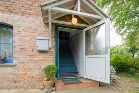 Das Landhaus liegt auf einem ca. 6400 qm großen Grundstück, bestehend aus typischen Bauerngärten mit Teich, Blumenbeeten, Gemüseanbau und Obstbäumen, weiten Wiesenflächen und schattenspendenden alten Bäumen.