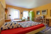 • ein Schlafzimmer mit einem Doppelbett (1,40x2,00 m) sowie einem Einzelbett (0,90x1,90 m)