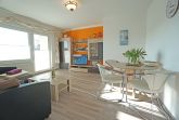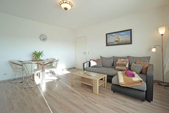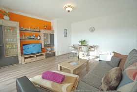 Sie wohnen in einer gemütlichen, hellen 2-Zimerwohnung in Heringsdorf. Die Wohnung befindet sich im Obergeschoß eines zweistöckigen Wohnhauses mit 5 Wohnungseinheiten. Die Wohnung besteht aus einem Wohnzimmer mit einer Doppelbettcouch, Schlafzimmer mit einem Doppelbett, separater Küche mit Essplatz, Bad mit Dusche und einem Balkon. Außerhalb der Wohnung befindet sich ein Abstellraum für z.B. Fahrräder und ein kostenloser Stellplatz für ein Auto.