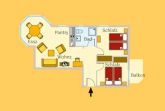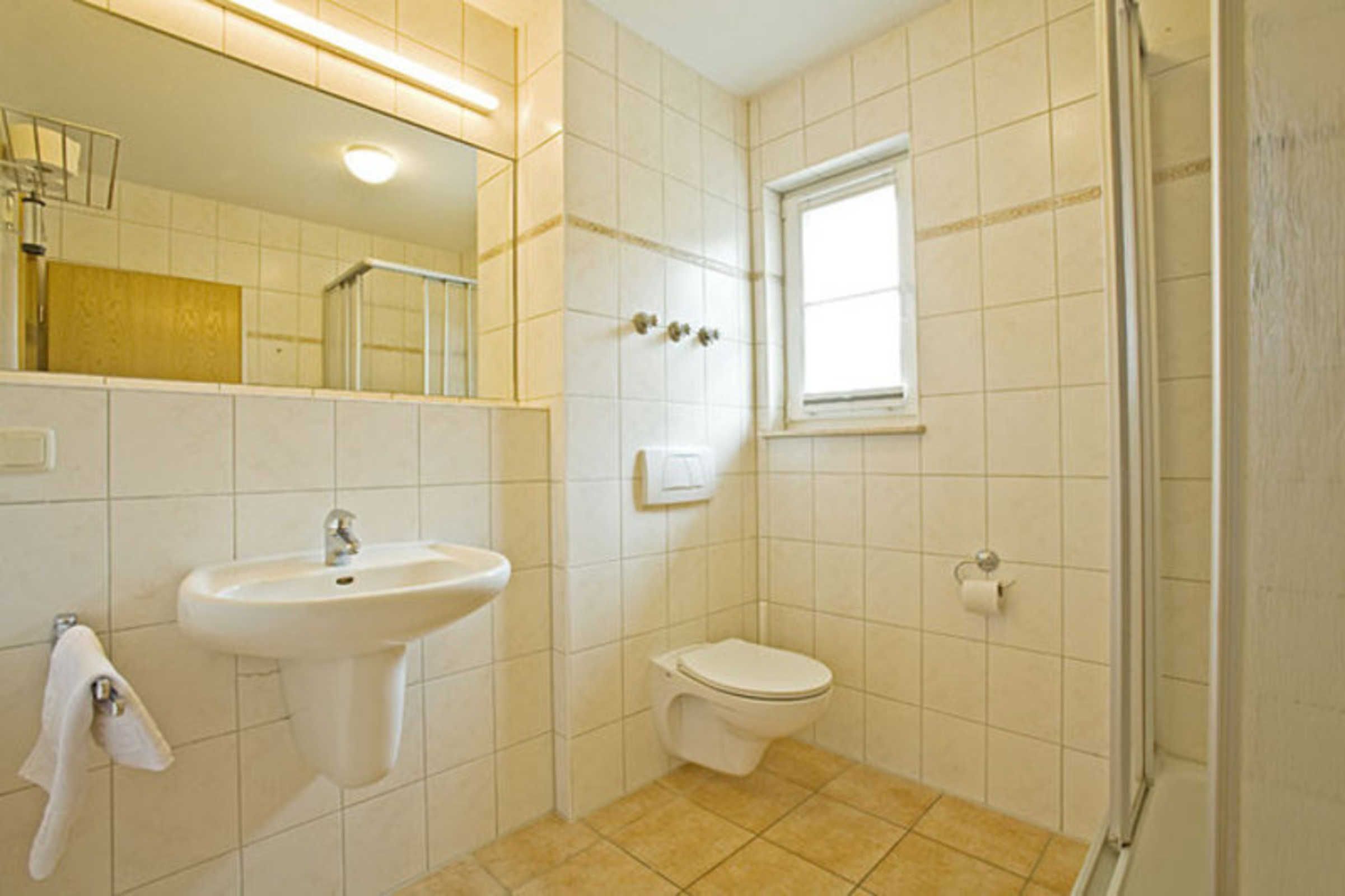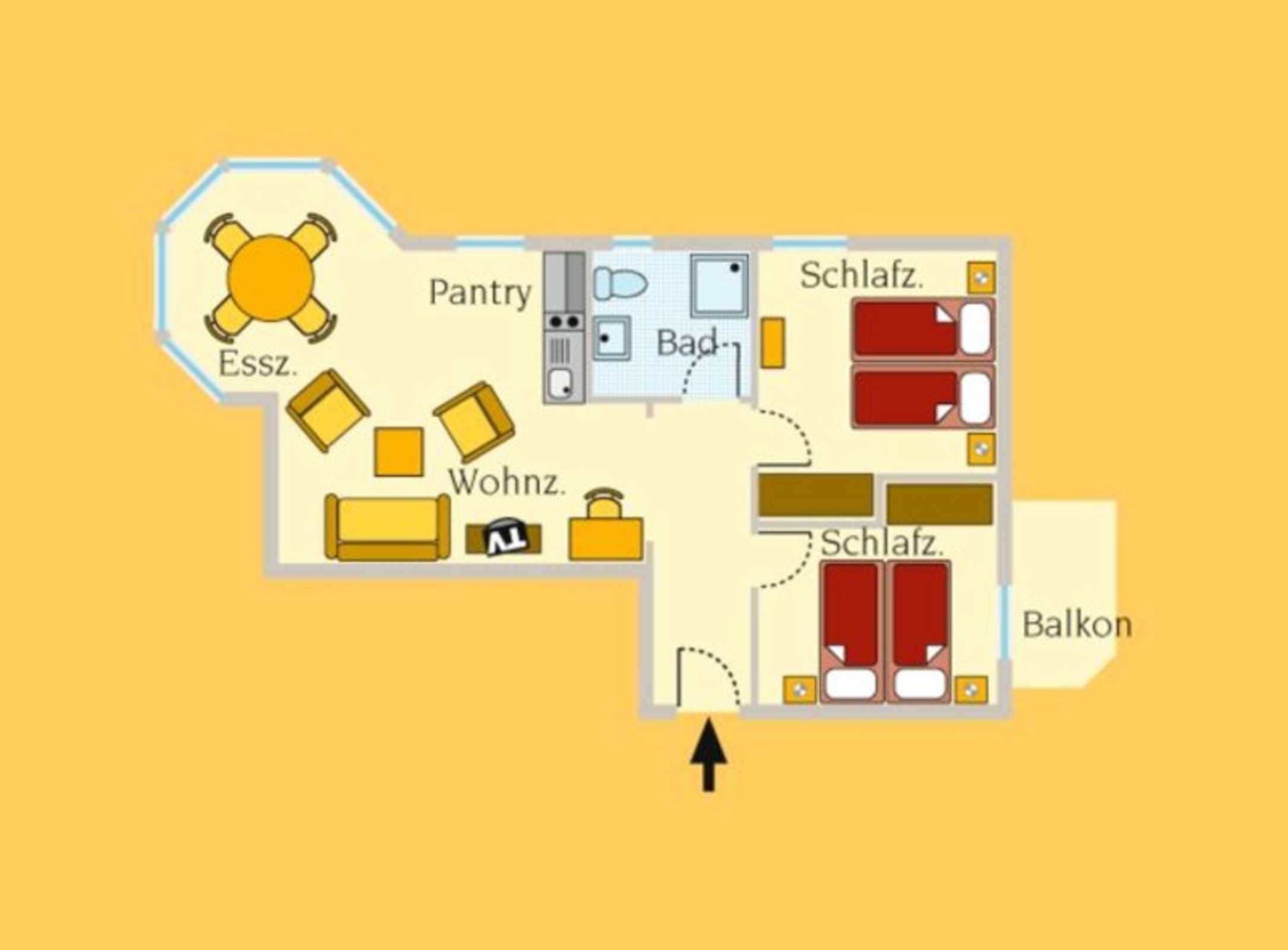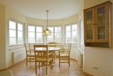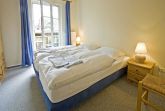 Die Wohnung Max für 4 Personen im Erdgeschoss ist geprägt von dem runden Esstisch im Erkerturm. Die Morgen- und Abendsonne geben diesem Wohnzimmer mit TV und Radio/CD-Spieler und der Küchenzeile den besonderen Reiz. Eines der zwei Schlafzimmer (je 2 Betten) hat einen kleinen Südbalkon mit Tisch und Stühlen auf der Seite des Hauseinganges. Das Bad hat ein kleines Fenster und ist mit einer Dusche ausgestattet.