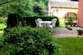 Rohrdachhaus, Strandnähe, separater Eingang,Weiße Landhausmöbel im Wohnzimmer, Waldblick von Terrasse, Gästeparkplatz, Laminat- und Fliesenböden, Fußbodenheizung, Wohnung im Erdgeschoss