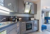Die Küche ist mit allen modernen Küchengeräten inklusive einer Nespresso-Maschine von KRUPS ausgestattet.