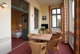 Auf der Terrasse vor dem Haus (Gemeinschaftsnutzung) haben Sie einen herrlichen Blick auf die alten Villen im Stil der Bäderarchitektur.