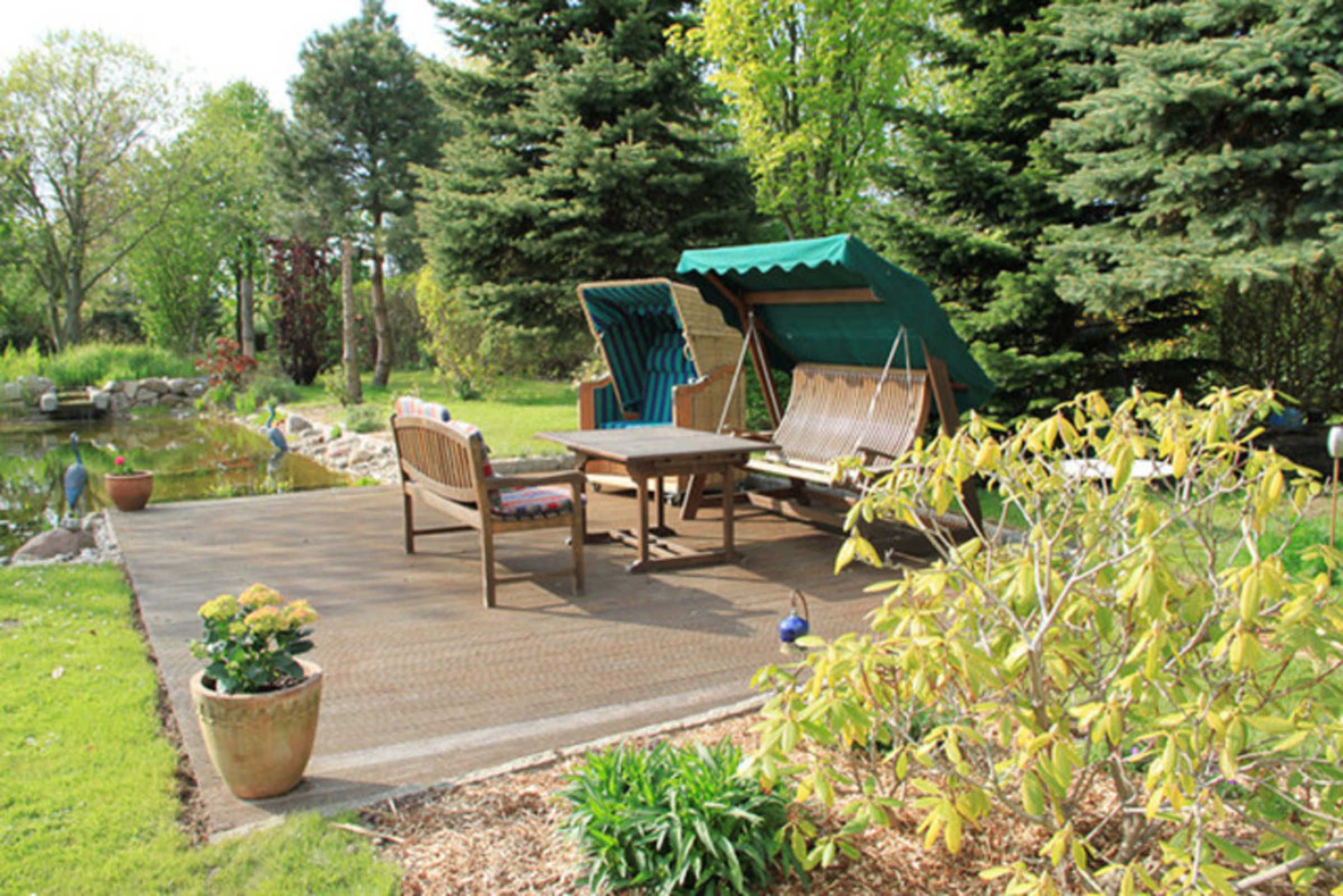 Freuen Sie sich auf das Appartment unterm Rohrdach in einer ruhigen Lage dicht am Bodden gelegen. Im großen Garten lädt die Sitzecke zum verweilen und ausruhen ein.