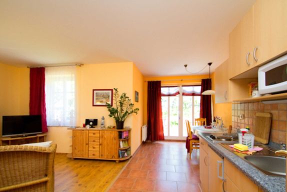 für 2 - 3 Personen, ca. 48 qm, 1 Schlafzimmer (Doppelbett 180 cm), schalldichte Fenster, Terrassenmöbel, 1 Aufbettung im Wohnzimmer möglich (Schlafsofa), Kinderbett &-stuhl, inklusive Pkw-Stellplatz am Haus, Nichtraucher, Haustiere erlaubt, Bettwäsche & Handtücher vorhanden