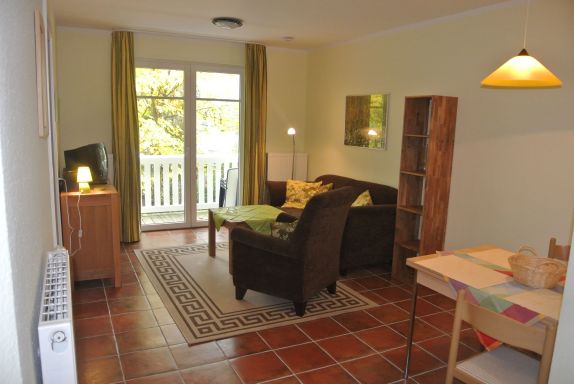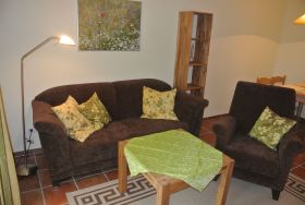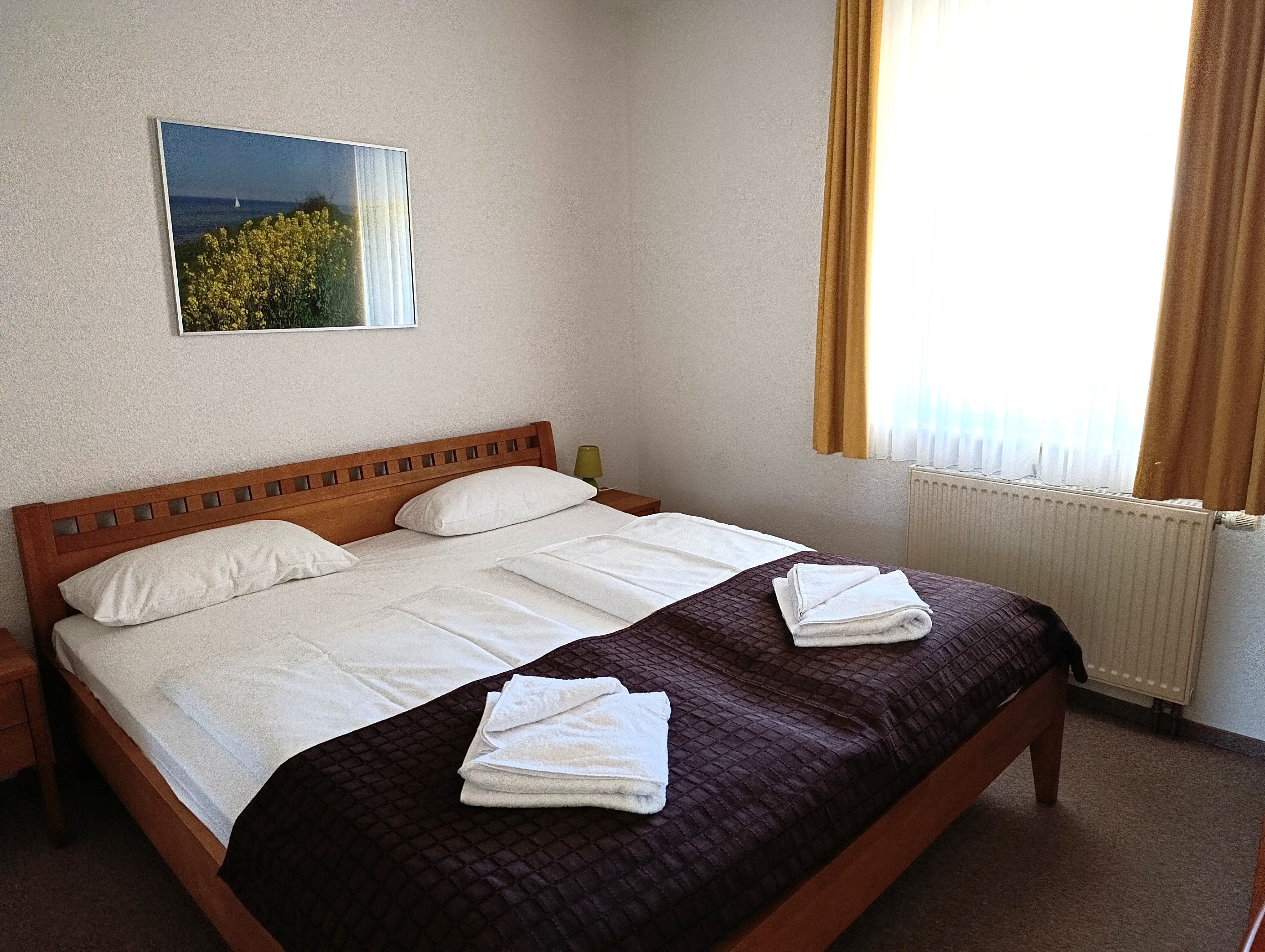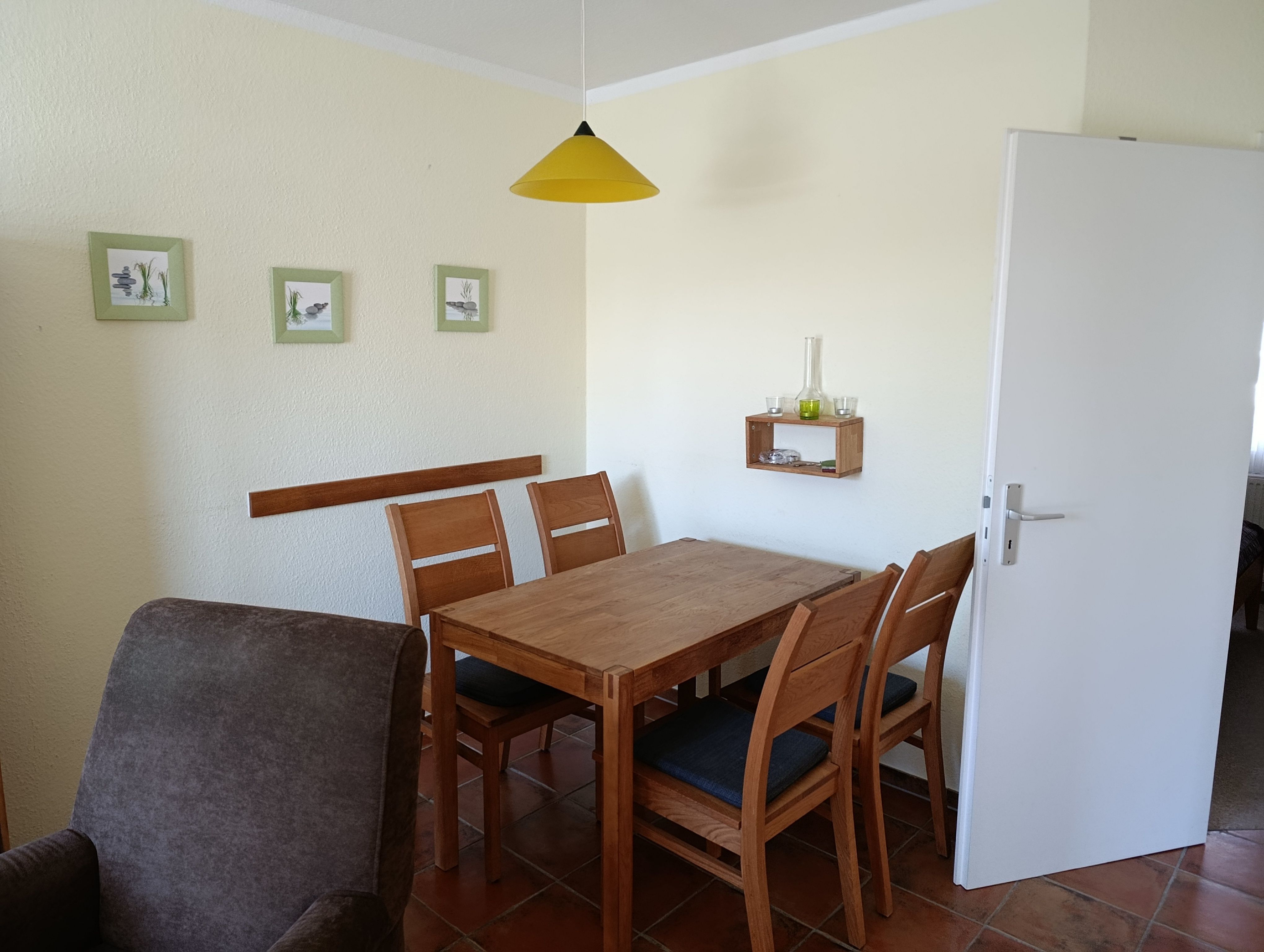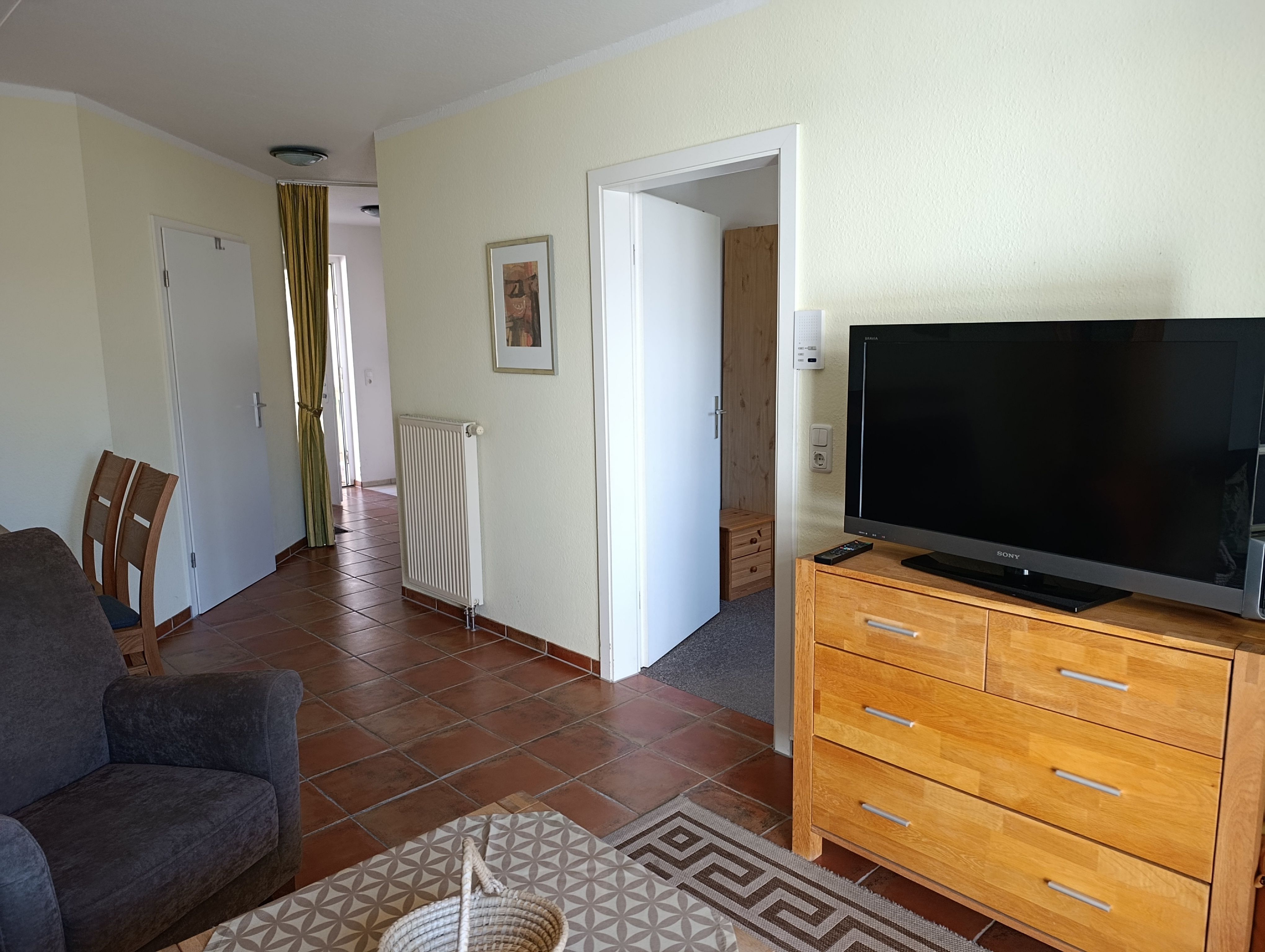 Die ca. 55 qm große Ferienwohnung liegt in der I. Etage, hat neben dem Wohnzimmer zwei Schlafzimmer, eine Kochnische sowie ein Duschbad und einen Balkon (nach Süden).