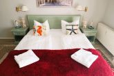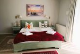 Schlafzimmer mit Doppelbett, Anrichte, Kosmetiktisch, Garderobe,