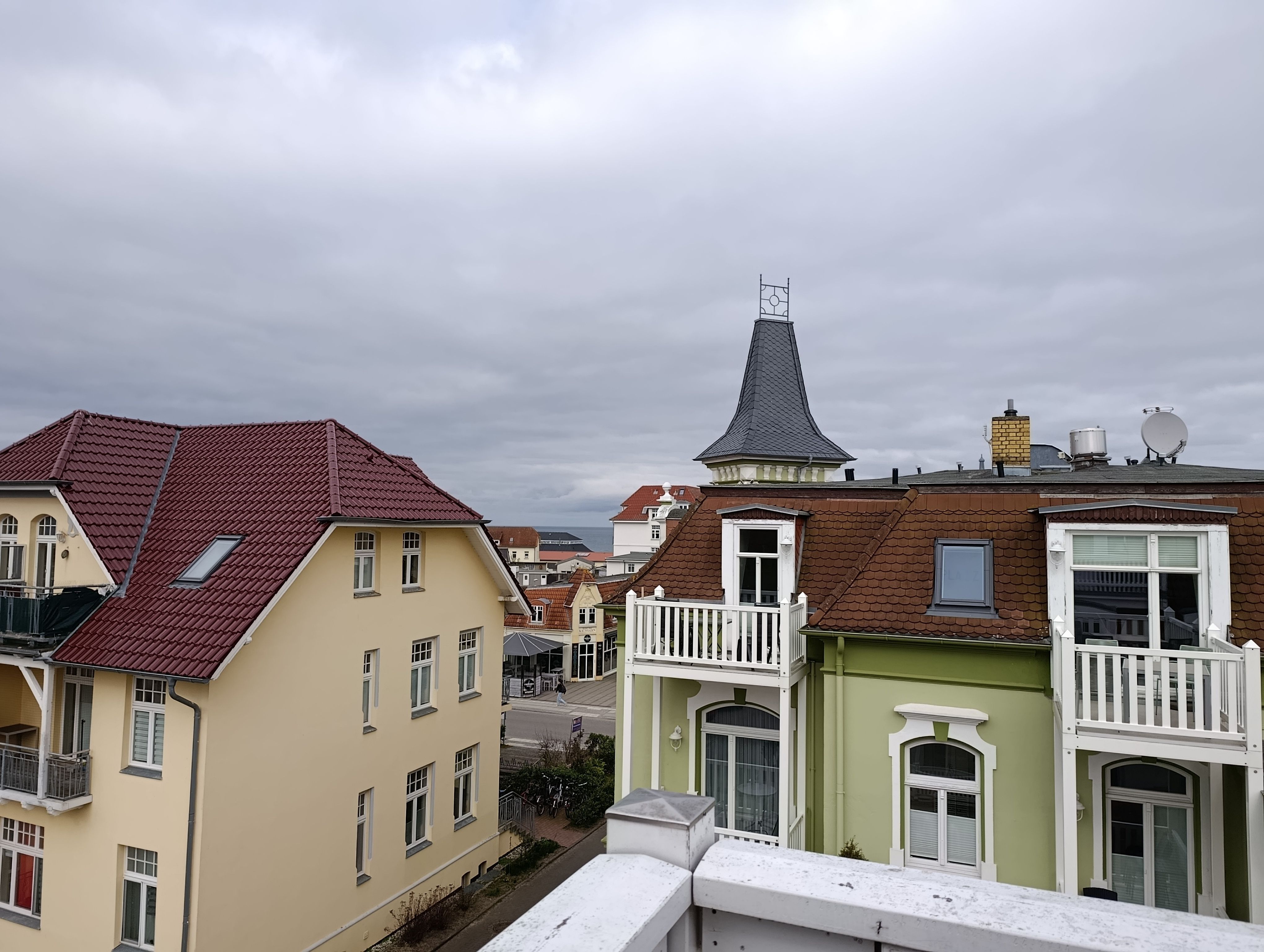 Nur 150 m vom Strand wohnen Sie in einer 2-Raum-Ferienwohnung. Die 32 qm große Wohnung liegt in der 3. Etage mit Fahrstuhl. Das Wohnzimmer ist mit einer Schlafcouch, Couchtisch, Sessel, Anrichte, mit Kabel-TV (Flachbildschirm), Radio, Essbereich (Tisch und Stühle) und Küchenzeile ausgestattet. Im Schlafzimmer stehen ein Doppelbett und eine kleine Anrichte. Die Küchenzeile wurde ausgestattet mit Kühlschrank, Kaffeemaschine, Zwei-Platten-Kochfeld, Toaster und Wasserkocher. Das Bad mit ebenerdiger Dusche und WC komplettiert die Wohnung.