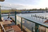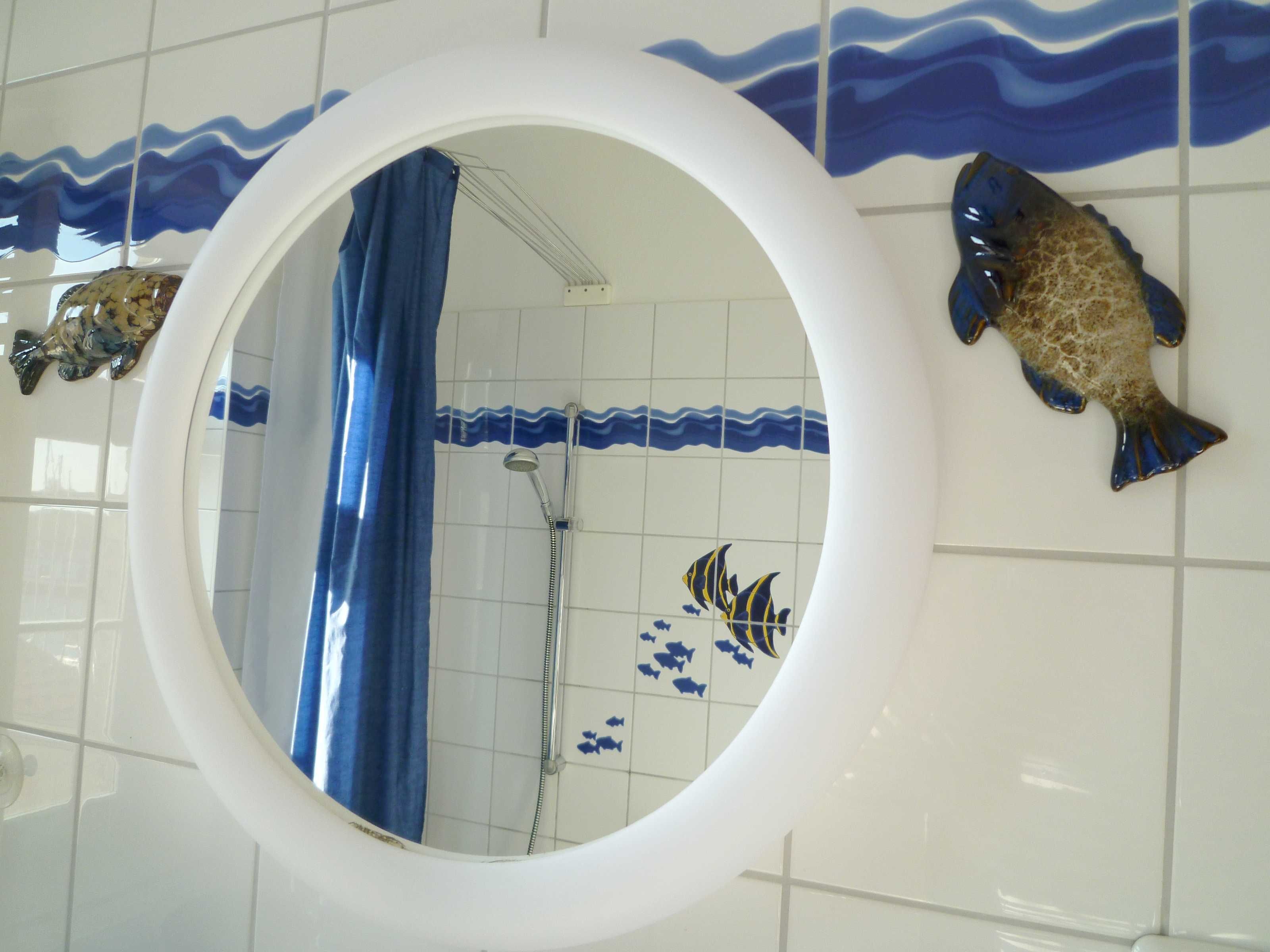 Das Wohnzimmer hat Wintergartencharakter, die Süd- und Westseite ist verglast, somit ist windgeschütztes Sonnen gewährleistet. An der Fensterecke zum Wasser im Wohnzimmer stehen für Sie zwei verstellbare, hochwertige Ledersessel mit Fußstützen zum Sonnen bereit. Alle Wohnzimmerfenster sind mit praktischen, individuell einstellbaren Jalousien ausgestattet. Ein elektrisches Kaminfeuer mit tollem Flammeneffekt sorgt abends für ein tolles Ambiente. Die schicke, ausziehbare Ledergarnitur bietet bei Bedarf zwei weitere Schlafplätze im Wohnzimmer. Ein Schlafzimmer verfügt über ein hochwertiges Doppelbett aus Erle massiv und ist mit einem zusätzlichen Fernseher an der Wand ausgestattet. Im zweiten Schlafzimmer steht eine Schlafcouch bereit. Genießen Sie aus beiden Schlafzimmern den entspannenden Wasserblick. Das Bad samt Fliesen ist in maritimem Design gehalten und mit einer Badewanne ausgestattet. Im Bad steht ein Waschtrockner für Sie bereit - sehr praktisch für die Wäsche zwischendurch oder für längere Aufenthalte.