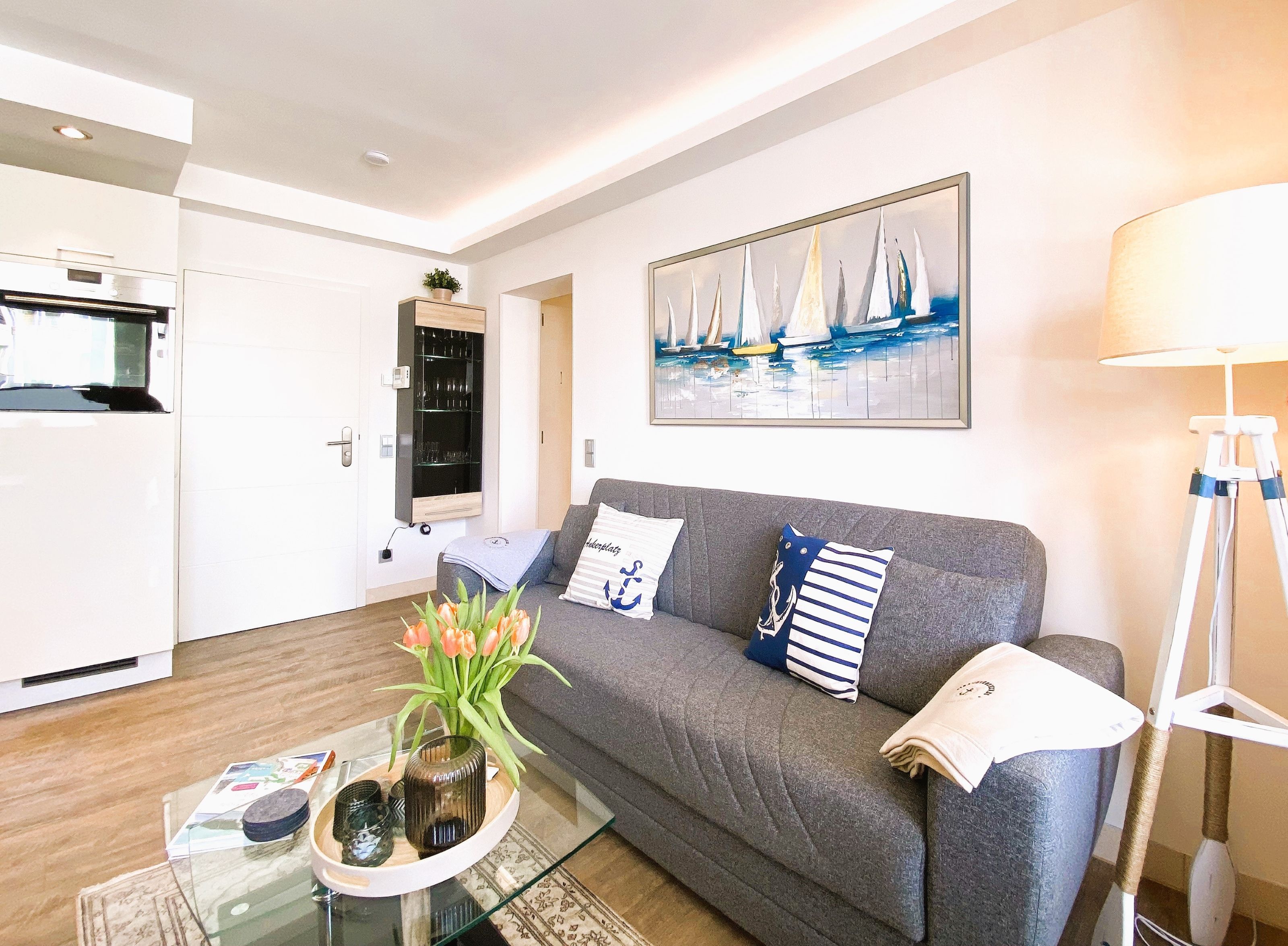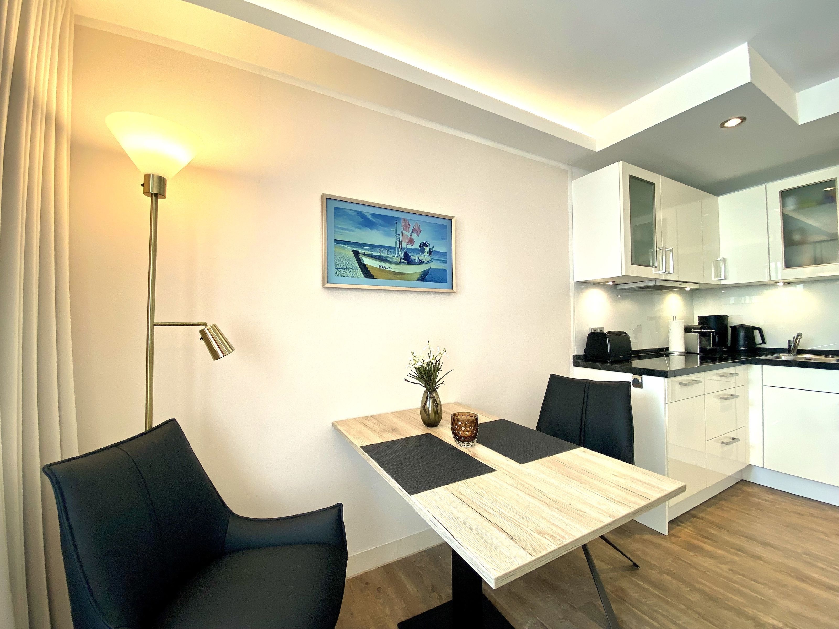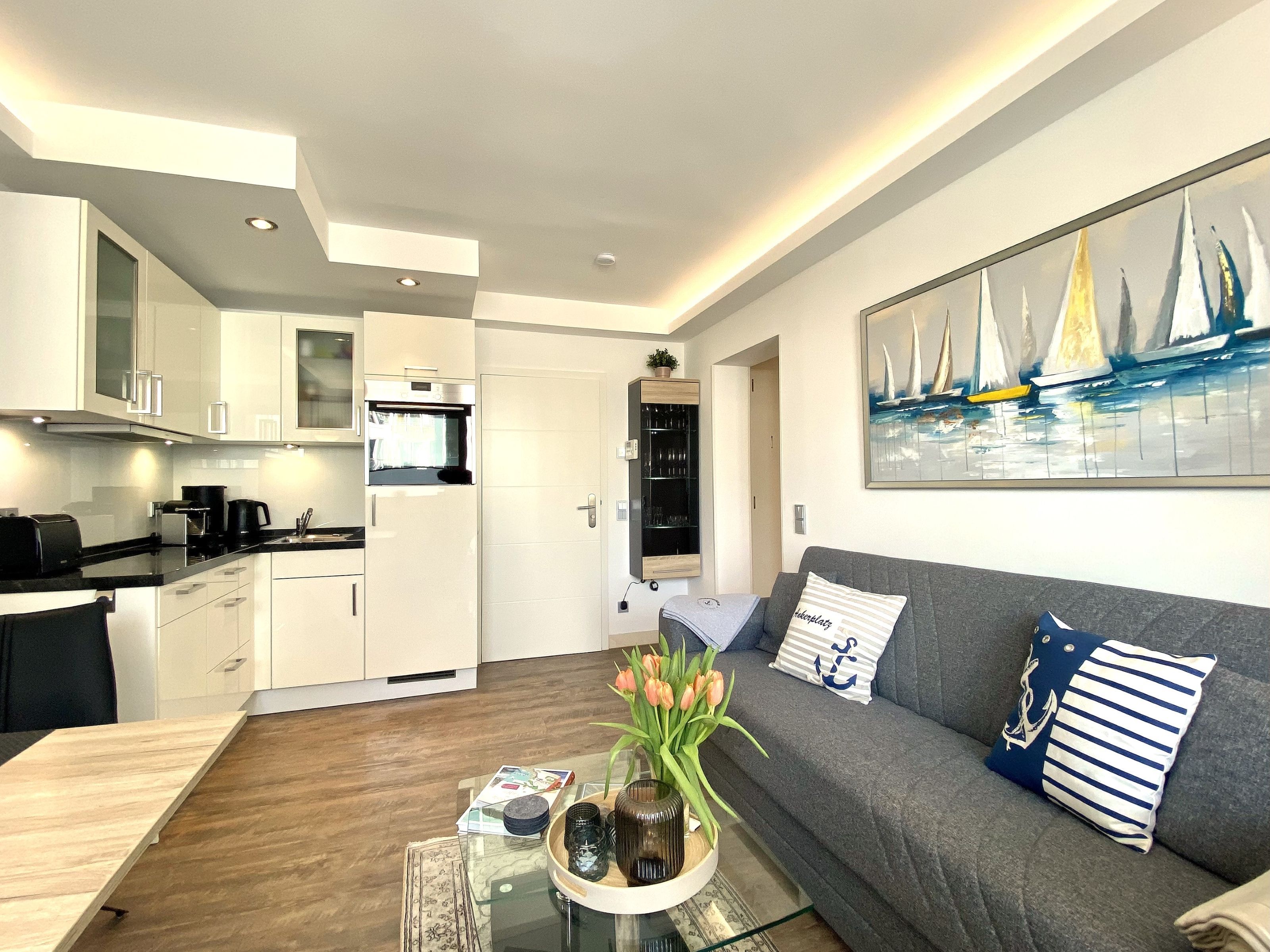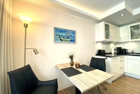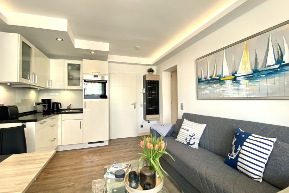 Die ca. 40m² große Zweiraumwohnung Strandversteck befindet sich im ersten Obergeschoß und ist für bis zu 3 Personen sehr modern eingerichtet.