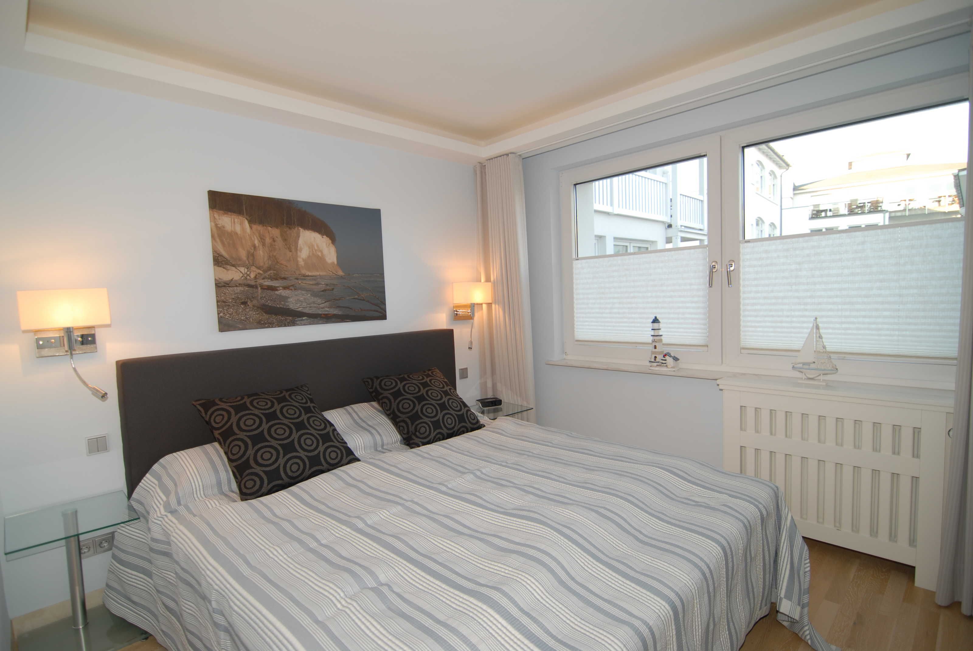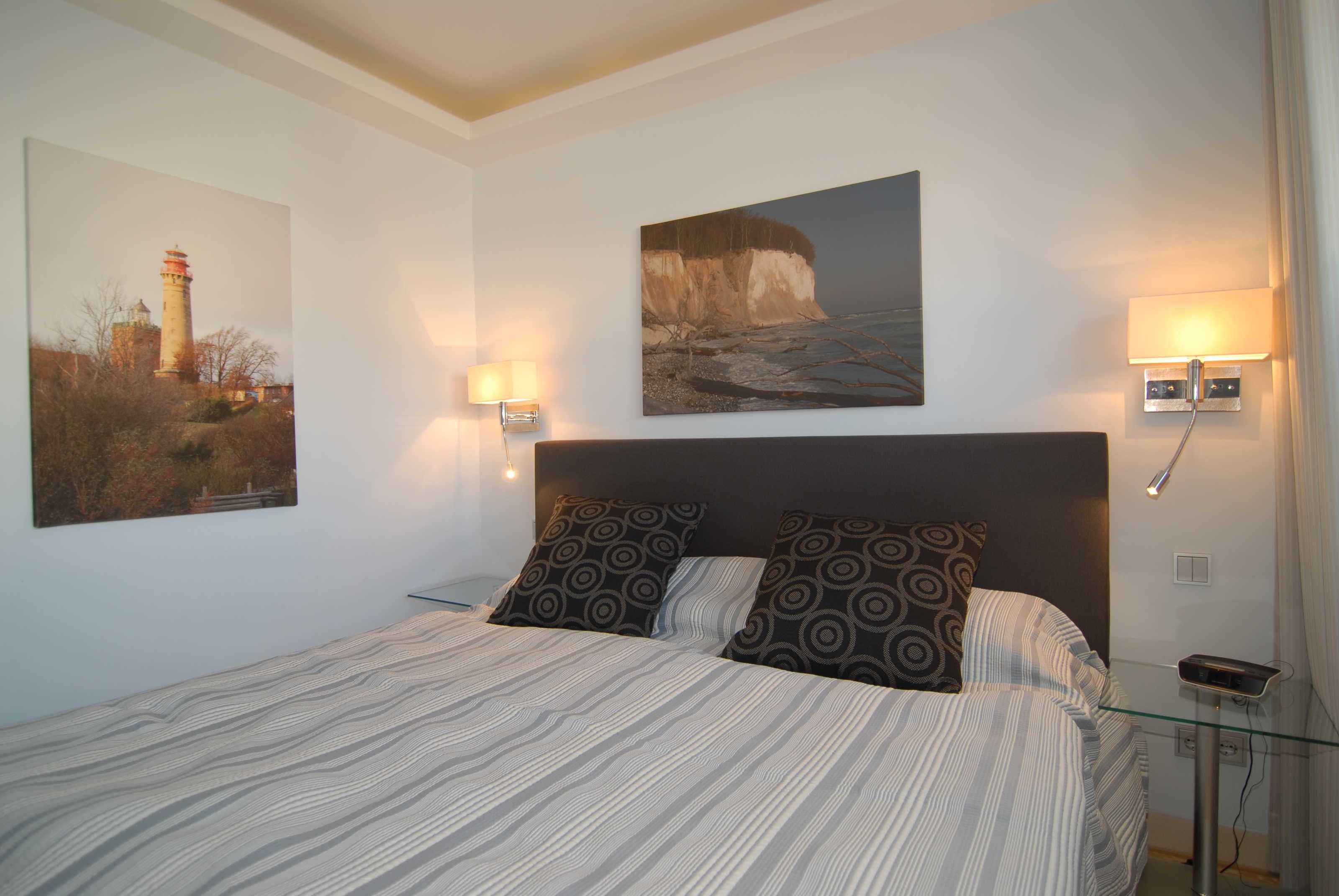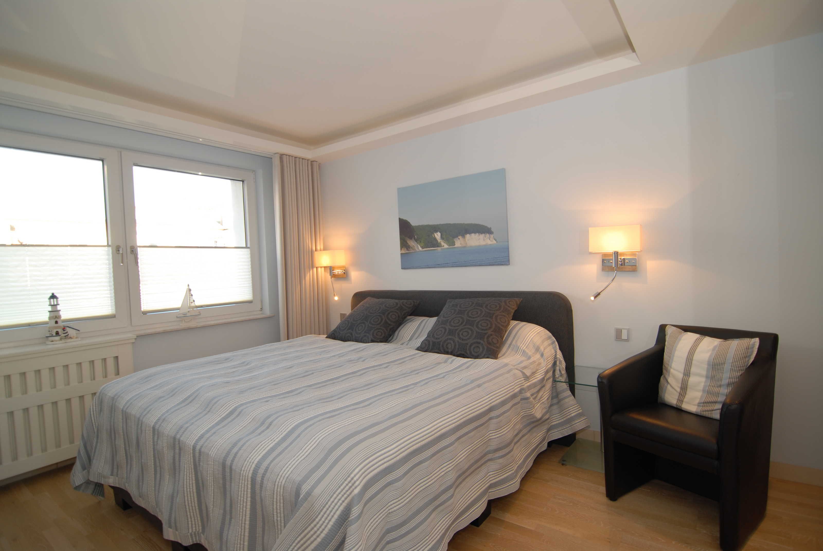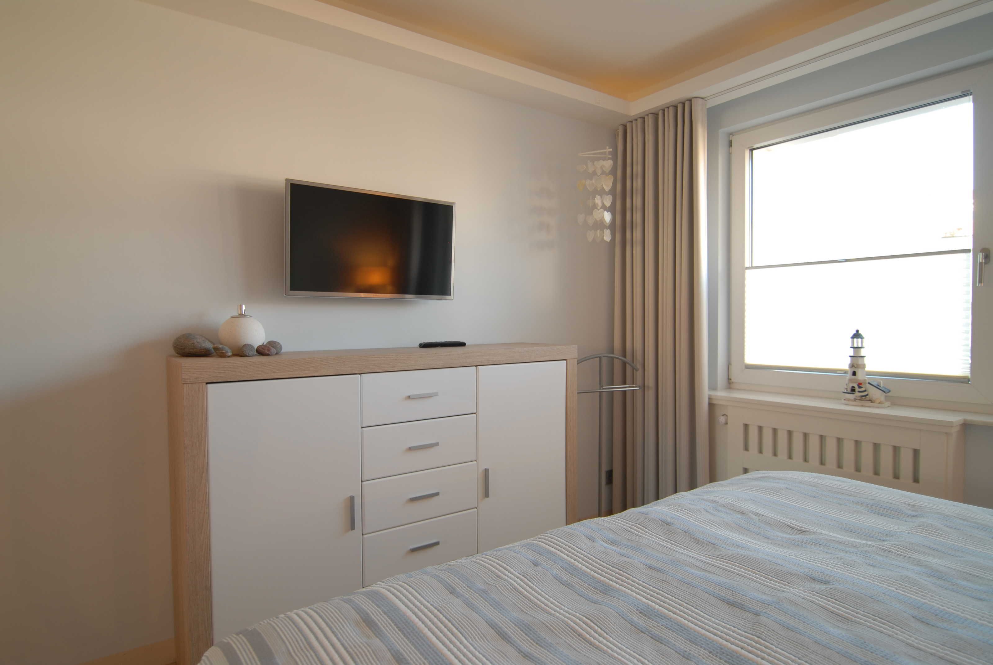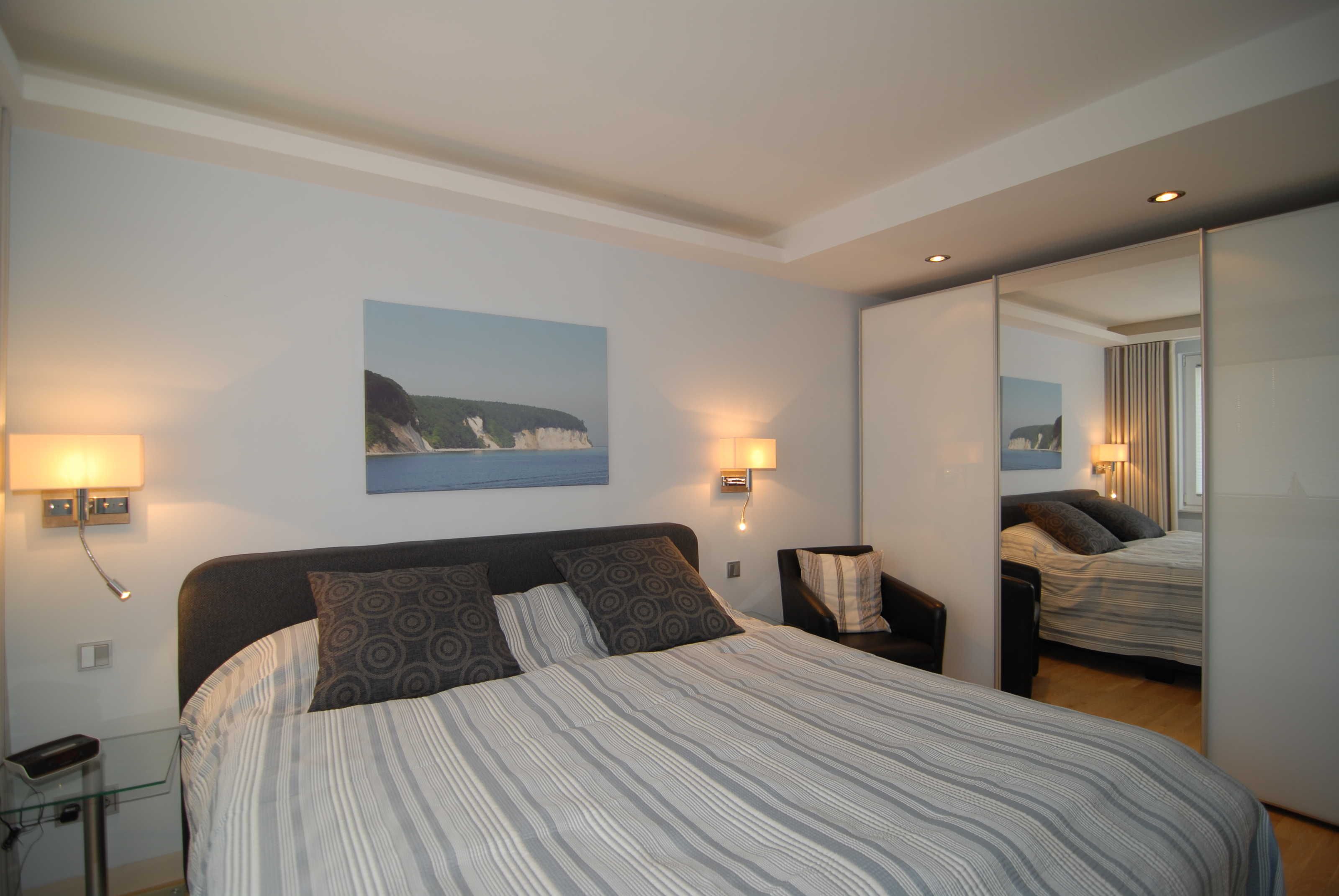 Beide Schlafzimmer verfügen über Boxspringbetten (1,80 x 2,00 m durchgängiger Topper), Schiebeschränke, Nachtkonsolen, Radiowecker und Verdunklungsvorhänge. Im größeren Schlafzimmer befinden sich außerdem noch ein SMART-TV-Gerät und ein Safe.