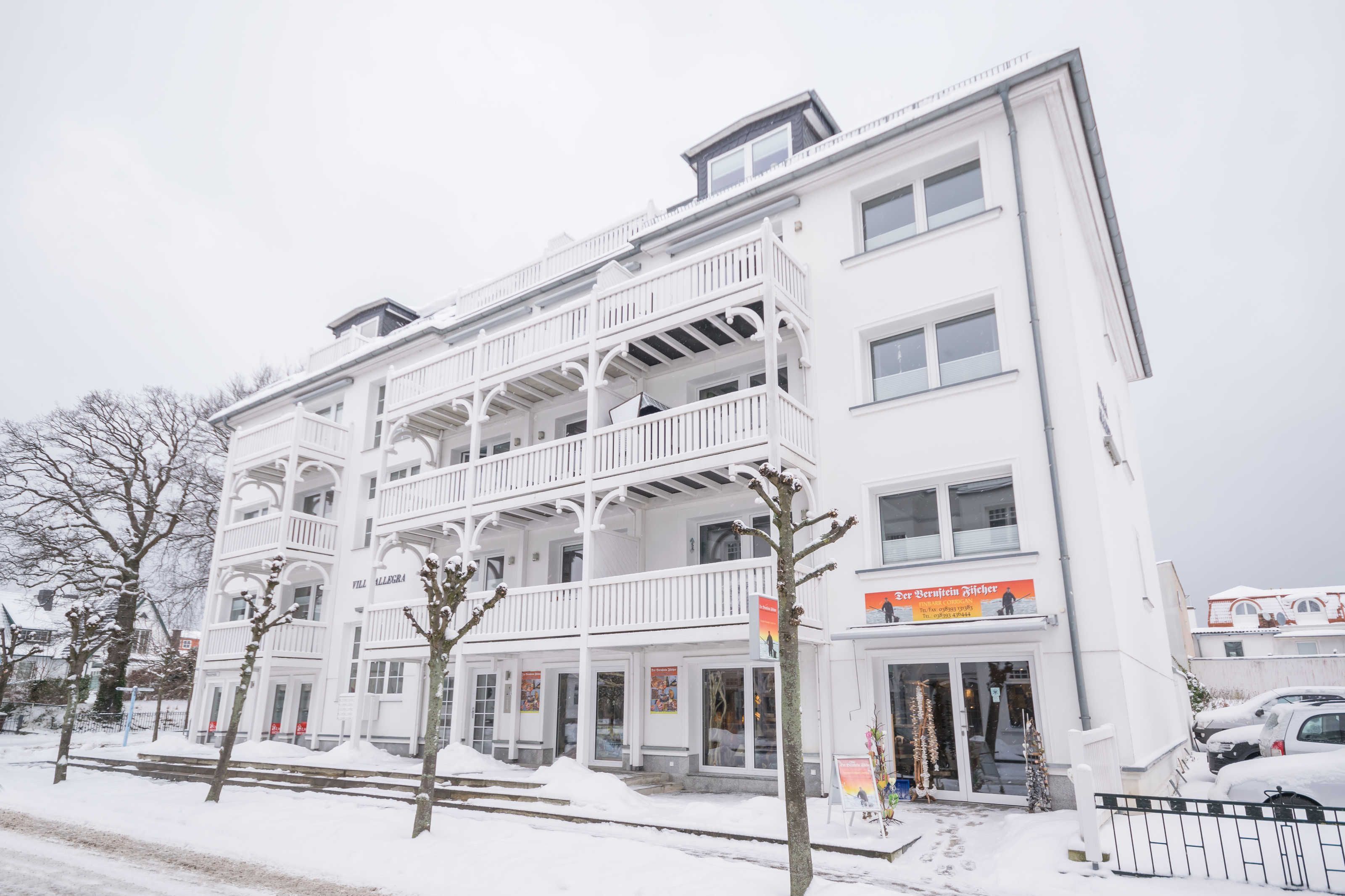 Die neue Villa Allegra im Herzen des Ostseebades Binz bietet Ihnen sehr moderne und elegant eingerichteten Zwei- und Dreiraumappartements. Die Größe der Ferienwohnungen variiert zwischen 39 und 110 m². Alle Wohnungen haben einen großzügien und hellen Wohnraum mit integrierter offener Küche. Das komfortable moderne Sofa im Wohnraum kann zum Teil als Schlafgelegenheit genutzt werden. In den separaten, schön gestalteten Schlafzimmer/Schlafzimmern befinden sich ein z.T. Boxspringbetten mit Nachtkonsolen, die Fenster sind mit Verdunkelungsplissees und/ oder Verdunkelungsgardinen versehen. Die Bäder sind hochwertig mit Marmor, modern und sehr elegant ausgestattet. Jede Wohnung ist mit dem Lift erreichbar.