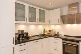 Über einen großzügigen Flurbereich erreicht man das Wohnzimmer der fast 100 m² großen Wohnung, mit offener hochwertiger und moderner Küche -Cerankochfeld, Backofen, Kühlschrank, Gefrierschrank, geräuscharmer Geschirrspüler, Kaffeemaschine, Toaster, Wasserkocher, Nespressoautomat und vieles mehr.