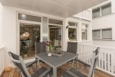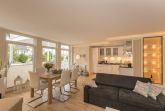 Eine gemütliche Sitzlandschaft lädt zum Wohlfühlen und relaxen ein. Ein Relaxsessel mit Fußhocker bietet eine ideale Rückzugsmöglichkeit. Über bodentiefe Fenster gelangt man auf den großen Hauptbalkon.