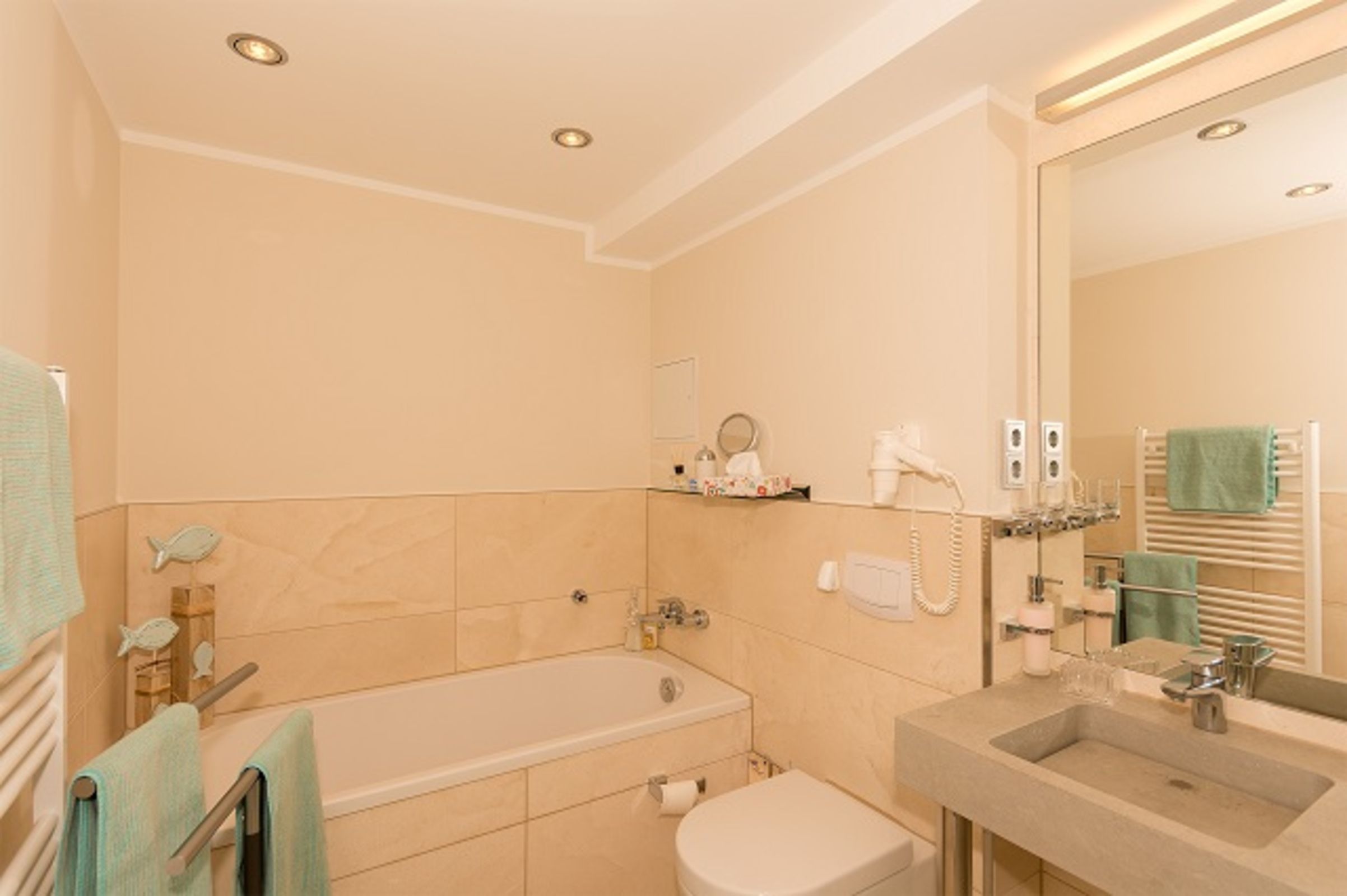 integriertem Fön und WC, sowie im großen Bad mit Badewanne.