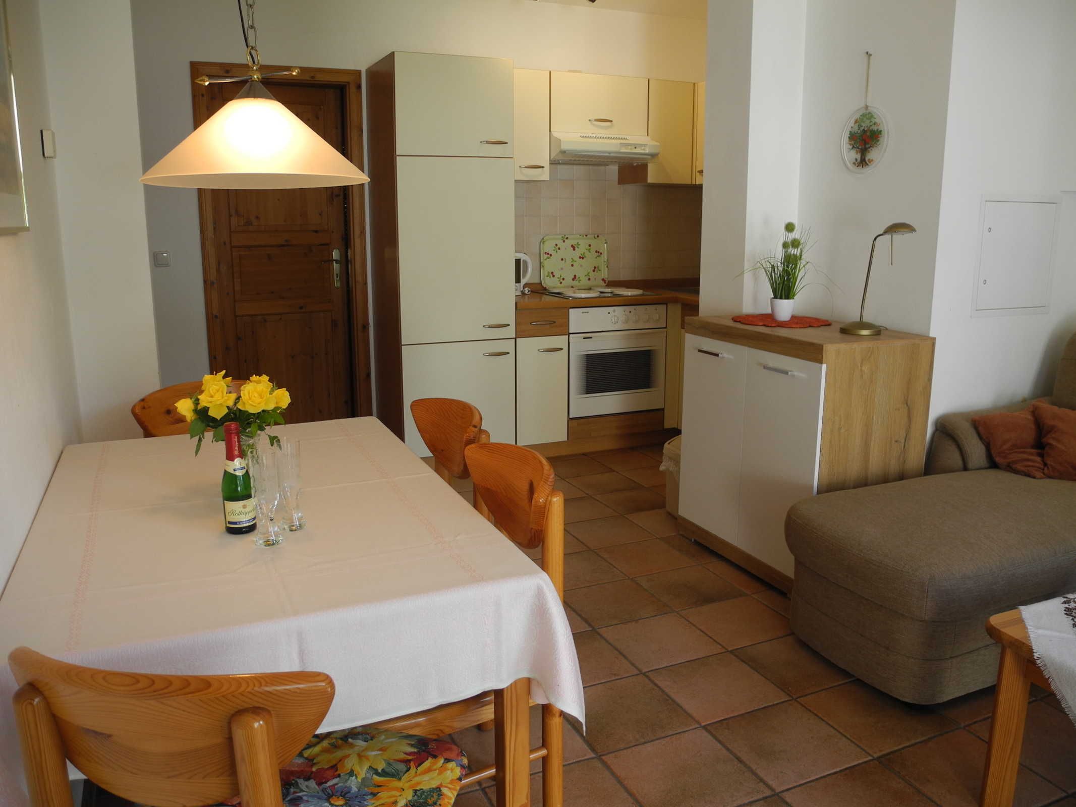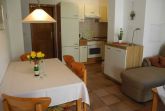 Diese Wohnung befindet im Erdgeschoss und verfügt über einen Wohnraum mit einer integrierten Einbauküche, Essplatz und Eckcouch, einem Elternschlafzimmer mit einem Doppelbett, einem Kinderzimmer mit einem stabilen Etagenbett, Dusche/WC sowie einer halbüberdachten Terrasse, die direkt in den großen Garten führt.
