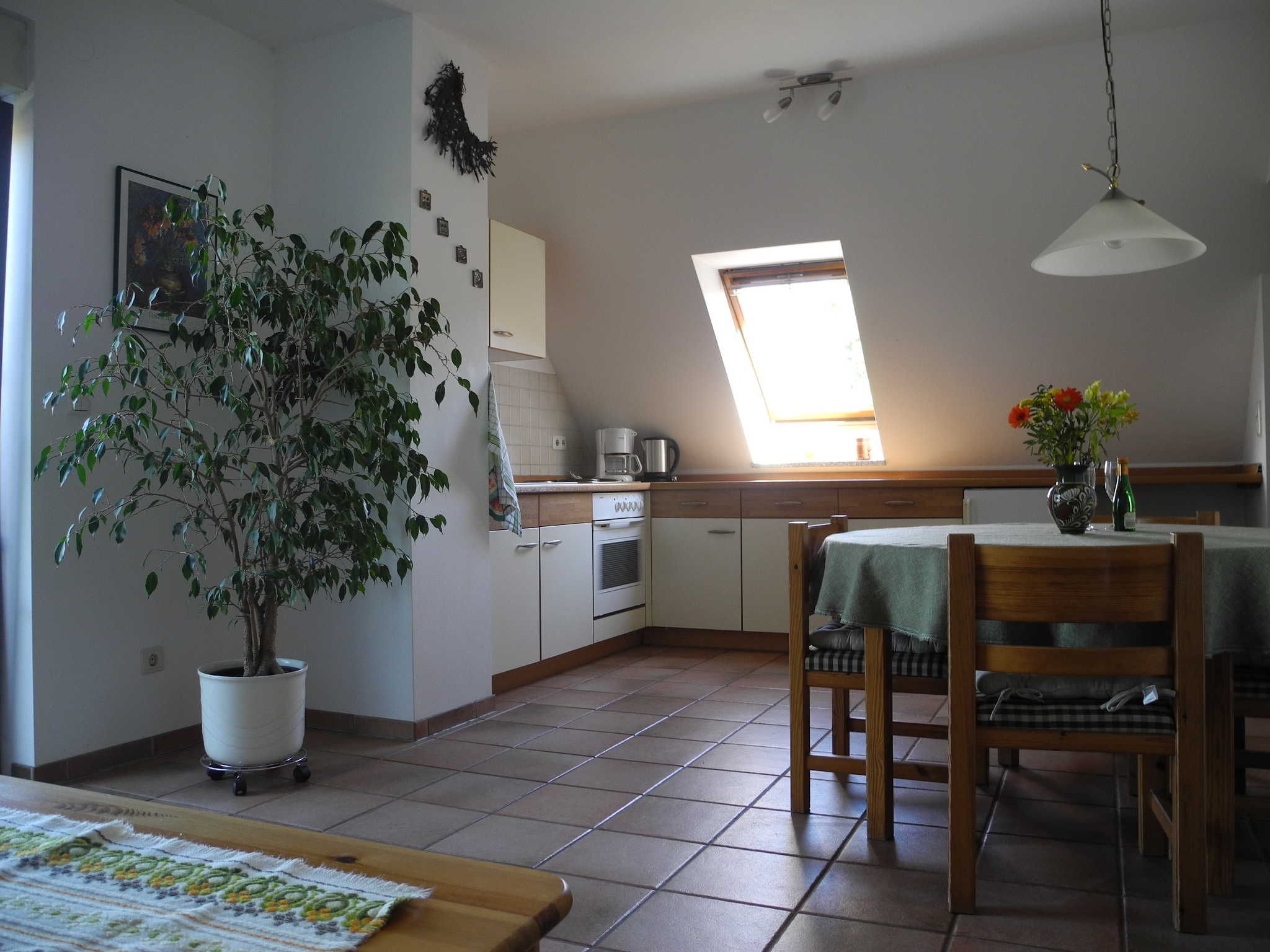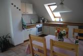 Diese Wohnung befindet sich im Dachgeschoss (1. Etage) und verfügt über einen großen Wohnraum mit einer gemütlichen Couchecke, Essplatz und integrierter Einbauküche, ein Schlafzimmer mit Doppelbett, Dusche/WC, sowie eine ca. 20 qm große Süd-West-Terrasse.