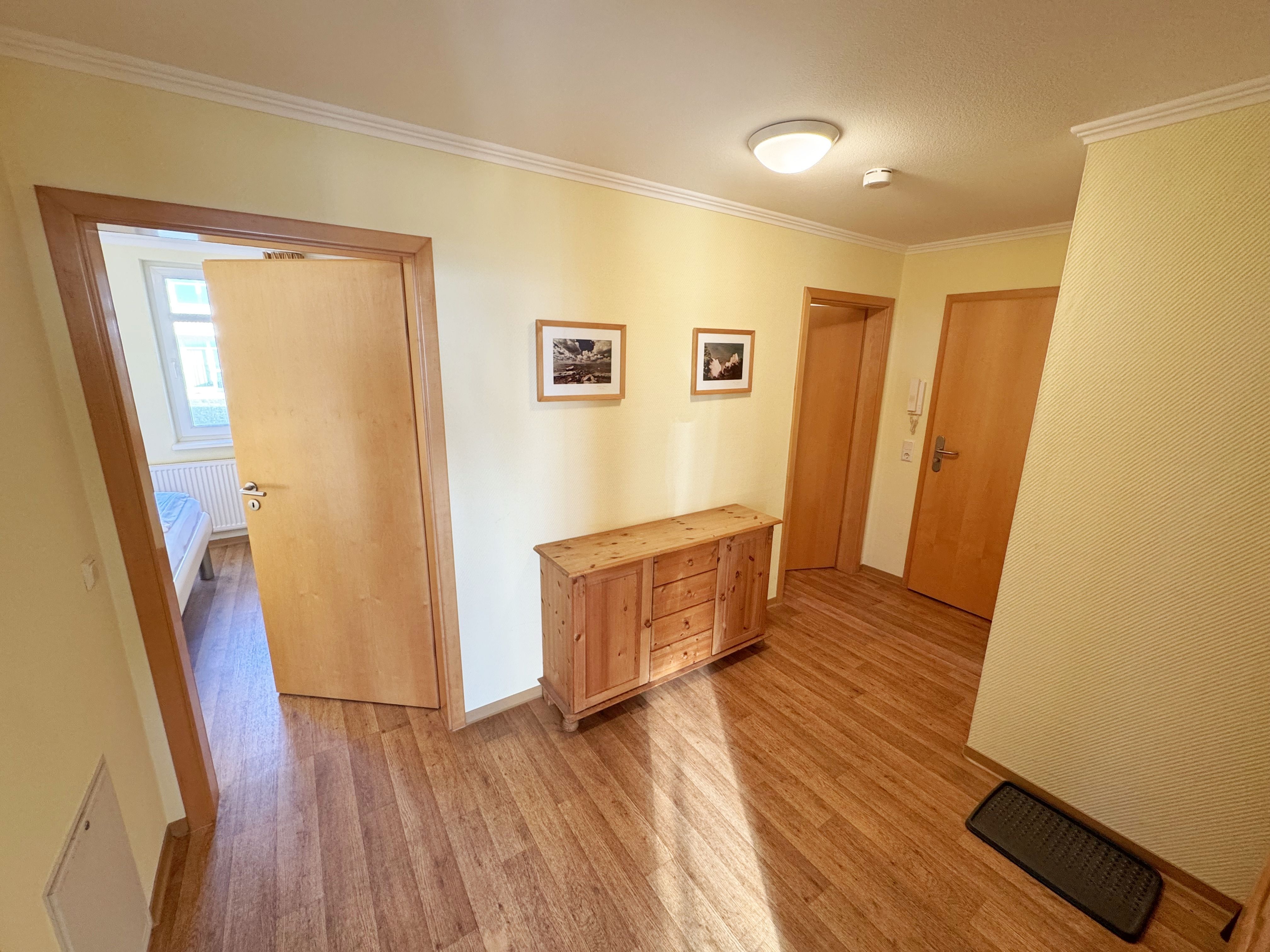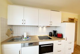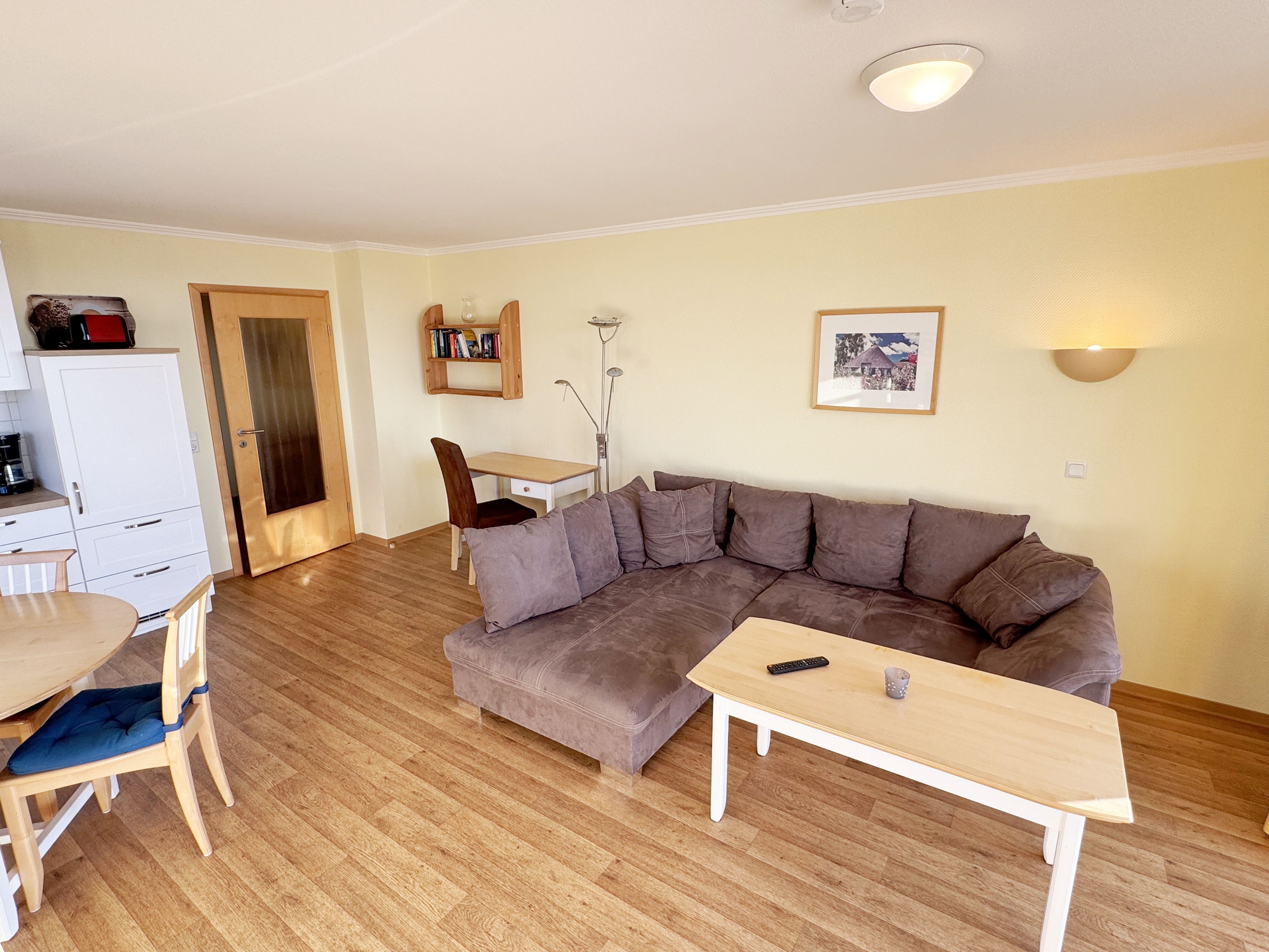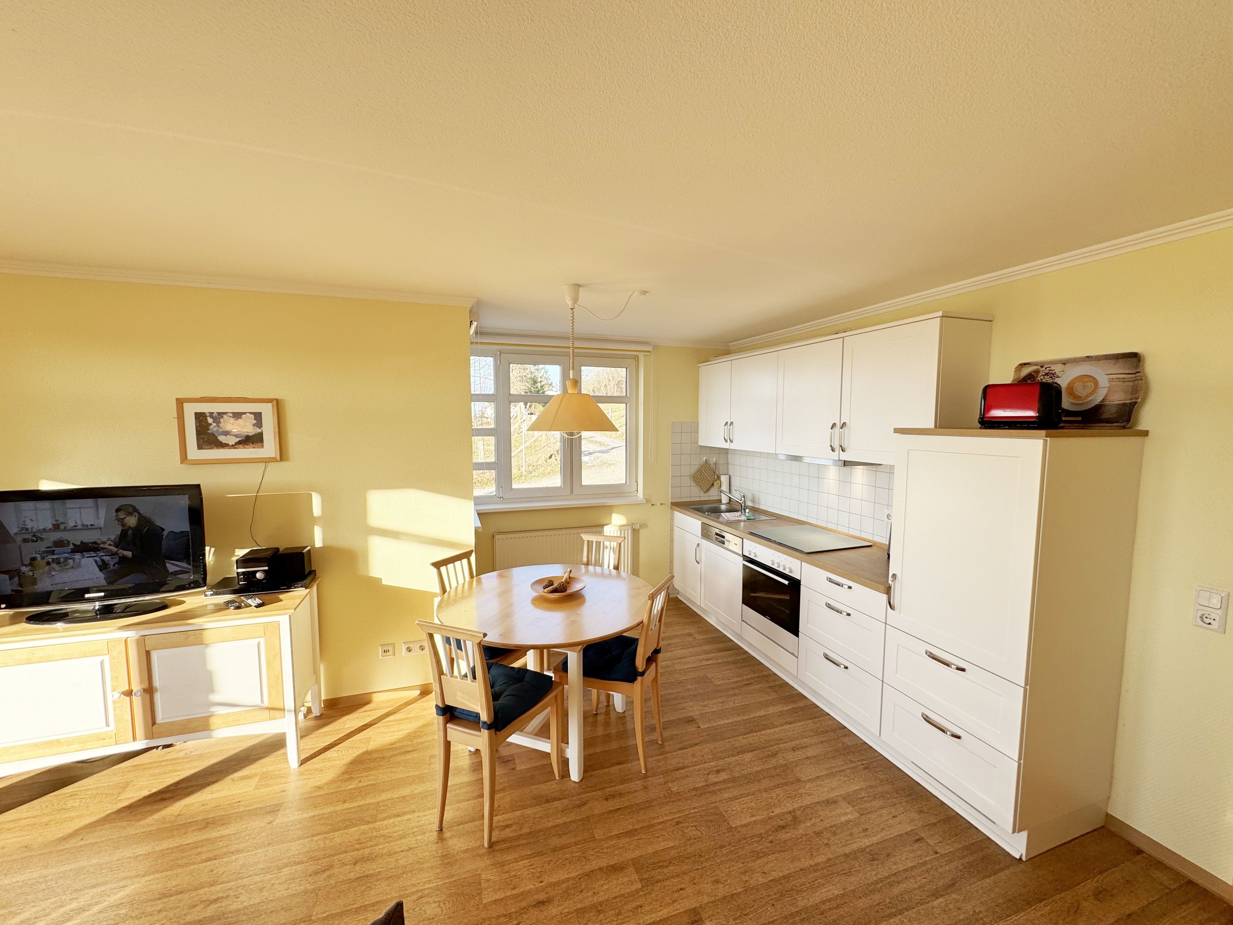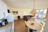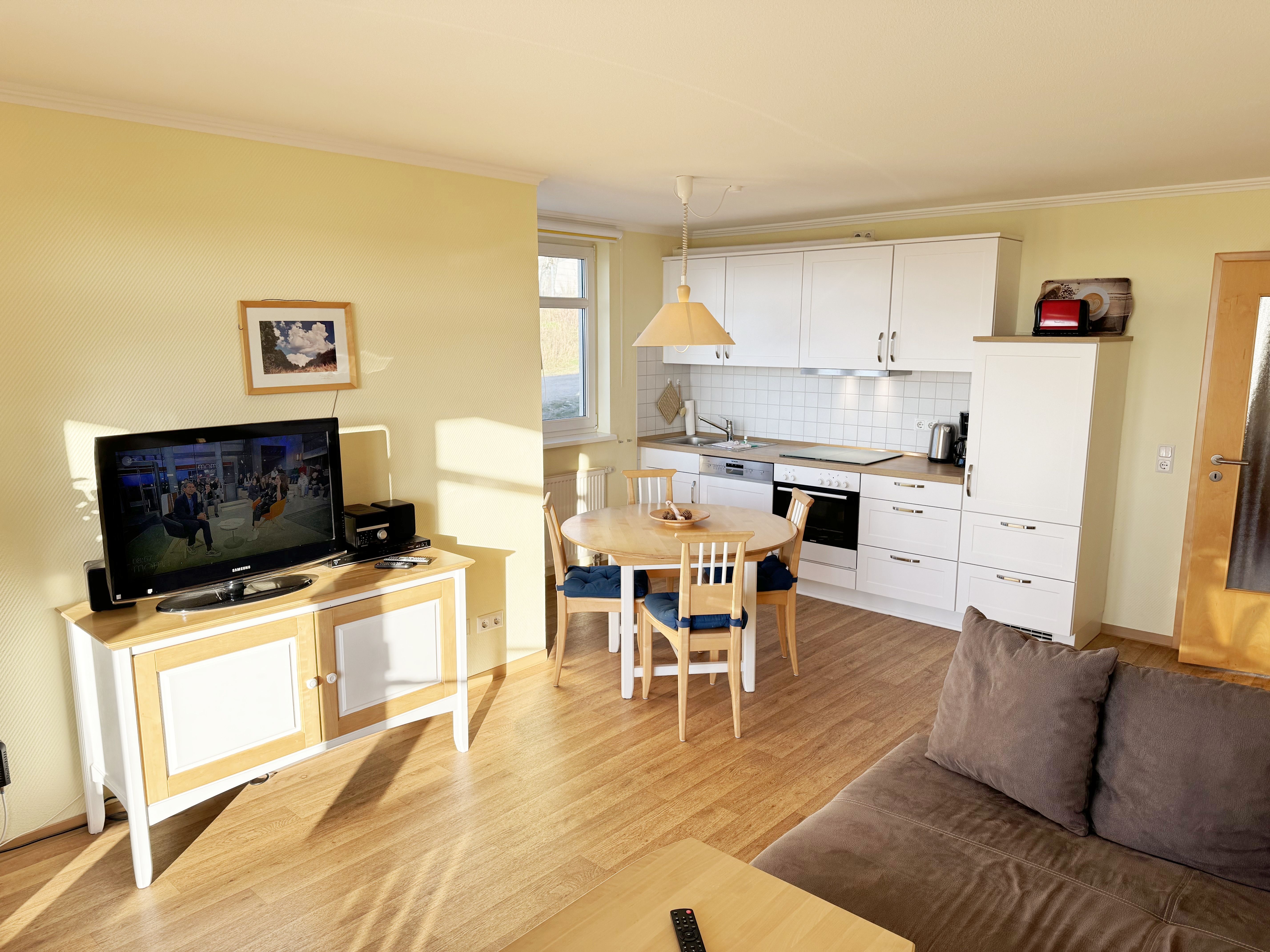 Unsere komfortable Nichtraucherwohnung von ca. 60 m² befindet sich in der 1. Etage und ist für max. 4 Erwachsene und 1 Kleinkind bis 3 Jahre im Kinderreisebett ausgelegt. Der Wohnbereich mit integrierter Küchenzeile und Essplatz ist großzügig ausgestattet. Die Küchenzeile verfügt unter anderem über einen Backofen, 4-Zonencerankochfeld, Kühlschrank mit Eisfach, Geschirrspüler, Kaffeemaschine, Wasserkocher, Toaster sowie diverse Küchenutensilien, die Ihnen beim Kochen keine Wünsche offen lassen. Der Essplatz besteht aus einem runden Holzesstisch mit 4 Stühlen. Ein Sideboard mit Flachbild-TV, DVD-Player, Ministereoanlage, Leselampe, Couch mit Couchtisch und einem Sessel runden den Wohnbereich ab. Das große Schlafzimmer verfügt über ein Doppelbett (2 x 0,90 m x 2,00 m) mit Nachttischkonsolen und Kleiderschrank. Das kleine Schlafzimmer ist ausgestattet mit einem französischem Bett, Nachttischablage sowie einem Kleiderschrank. Im Wohnbereich sowie im Schlafbereich befinden sich Insektenschutzgitter. Genießen Sie von Ihrem bestuhlten Balkon mit Ausrichtung (Süd/Südwest) den einmaligen Blick auf die Ostsee. Das Bad ist mit einem Waschtisch, Dusche, WC, Urinal, Kosmetikspiegel und Fön eingerichtet. Ein Fenster im Badbereich spendet Ihnen Tageslicht. Ein eigener PKW-Stellplatz Nr. 06 sowie eine Fahrradabstellmöglichkeit sind für Sie vorhanden. Ein WLAN-Zugang steht Ihnen inklusive zur Verfügung. Ein Kinderreisebett (ohne Matratze und Bett Inlett) und ein Hochstuhl können auf Anfrage gegen eine Gebühr für unsere kleinen Gäste gestellt werden. Waschmaschine und Trockner kann in einem separaten Raum genutzt werden. Die Erstausstattung eines Wäschepaketes (komplette Bettwäsche, 1 Duschhandtuch, 2 kleine Handtücher) können Sie bis 14 Tage vor Anreise gegen einen Aufpreis dazu buchen oder durch eigene ergänzen. Ab 2 gebuchten Paketen erhalten Sie einmalig 1 Geschirrhandtuch und 1 Duschvorleger dazu.