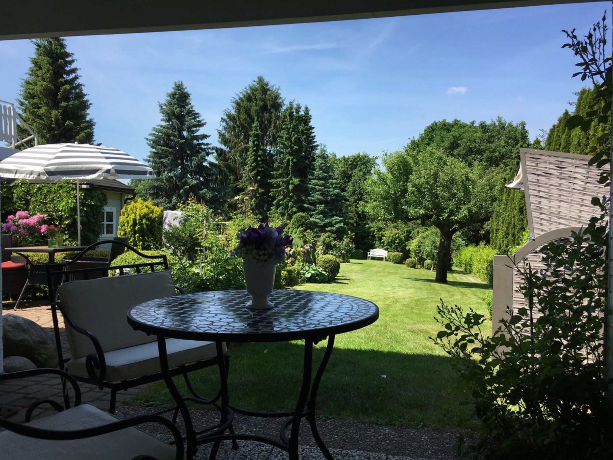Die Ferienwohnung verfügt über ein Wohnzimmer, ein Schlafzimmer und ein Esszimmer sowie eine komplett ausgestattete Küche und eine Terrasse mit Blick in den schönen Garten.