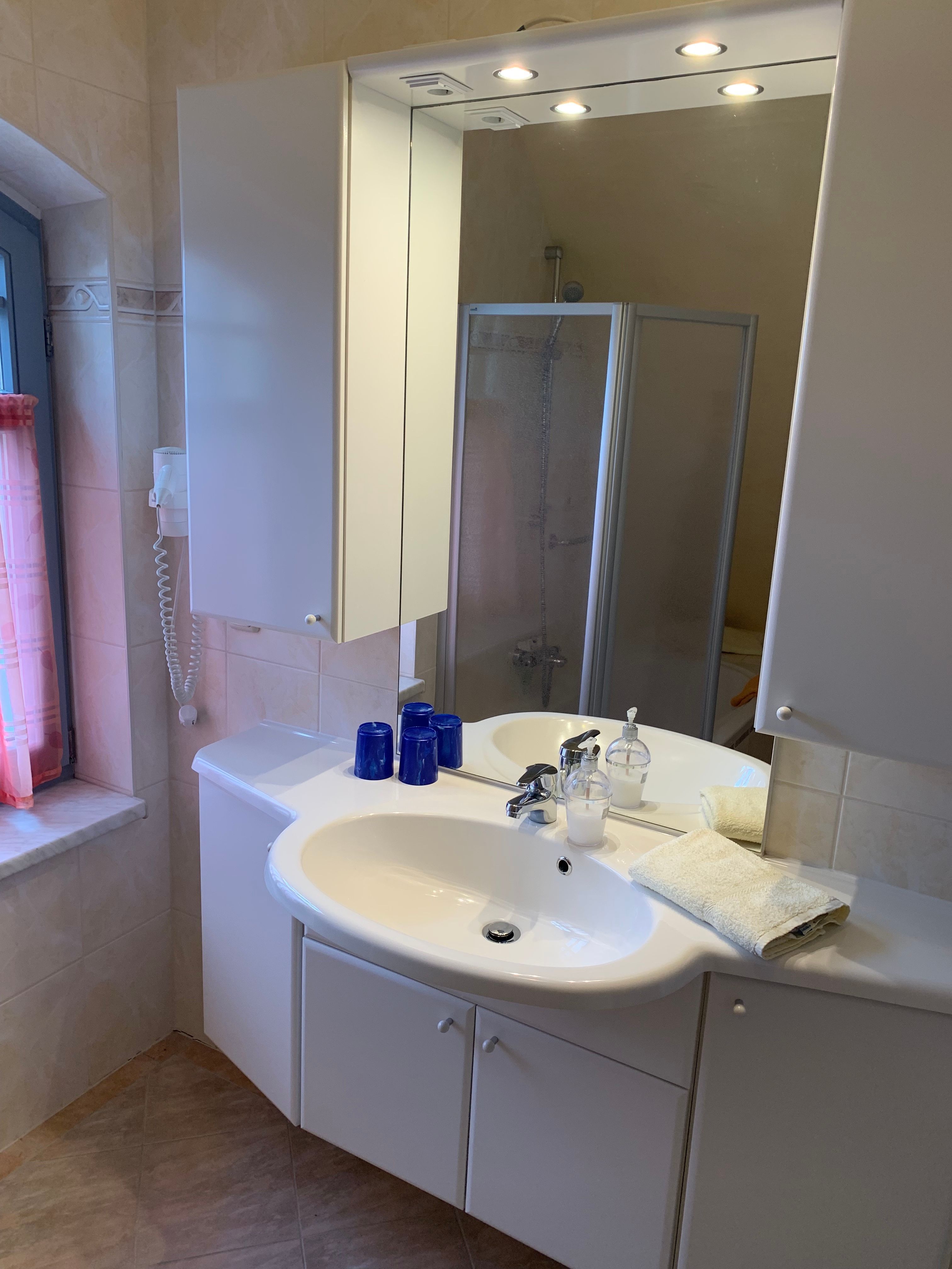 Die mit 45 m2 großzügig geschnittene Ferienwohnung verfügt über einen Wohn- und Essbereich. Außerdem stehen Ihnen ein Schlafzimmer und ein Badezimmer mit Badewanne, Dusche und WC zur Verfügung.