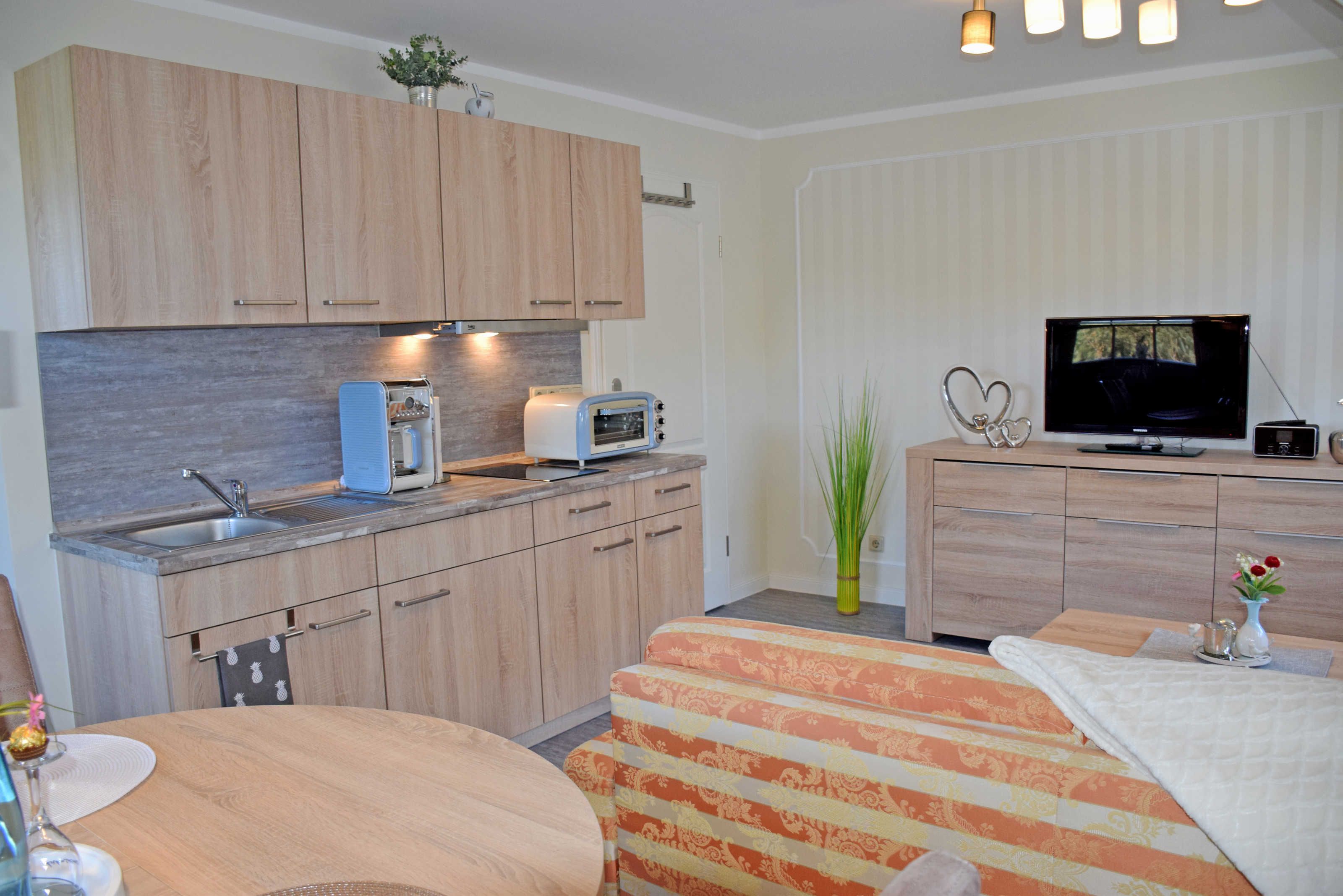Unser moderne und liebevoll eingerichteten Ferienappartements am Granitzwald (ca. 48 qm, 1 Wohnzimmer, 1 Schlafzimmer; max. 3 Erw., mit WLAN - Anschluss) befinden sich im Obergeschoss eines 2000 neu erbauten Wohnhauses. Das Haus liegt sehr ruhig und naturnah direkt am Beginn der Garnitz mit herrlichen Misch- und Buchenwäldern. Bis zum kilometerlangen, feinsandigen Badestrand an der Ostsee sind es nur ca. 1.500 m.
