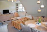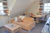 Im Wohnzimmer befinden sich neben einer gemütlichen Schlafcouch (1.50 x 2.00m)auch technische Geräte, wie zum Beispiel ein Sat-TV, Radio sowie ein Telefon. Angrenzend an den Wohnbereich befindet sich eine Essecke, von der man aus auf den schönen Balkon mit einer bequemen Sitzgarnitur gelangt. Die moderne Küchenzeile ist mit einem Ceranfeldherd, Abzugshaube, Wasserkocher, Kaffeemaschine, Mini-Backofen, Toaster und Kühlschrank mit Gefrierfach komplett ausgestattet. Das Schlafzimmer ist mit einem bequemen Boxspringbett (Breite 2m) inklusiv Nachttischen, Radiowecker und Leselampen sowie einem Kleiderschrank hergerichtet. In allen Wohnbereichen können die Fenster durch hochwertige Plissees abgedunkelt werden und somit vor UV-Strahlung schützen.