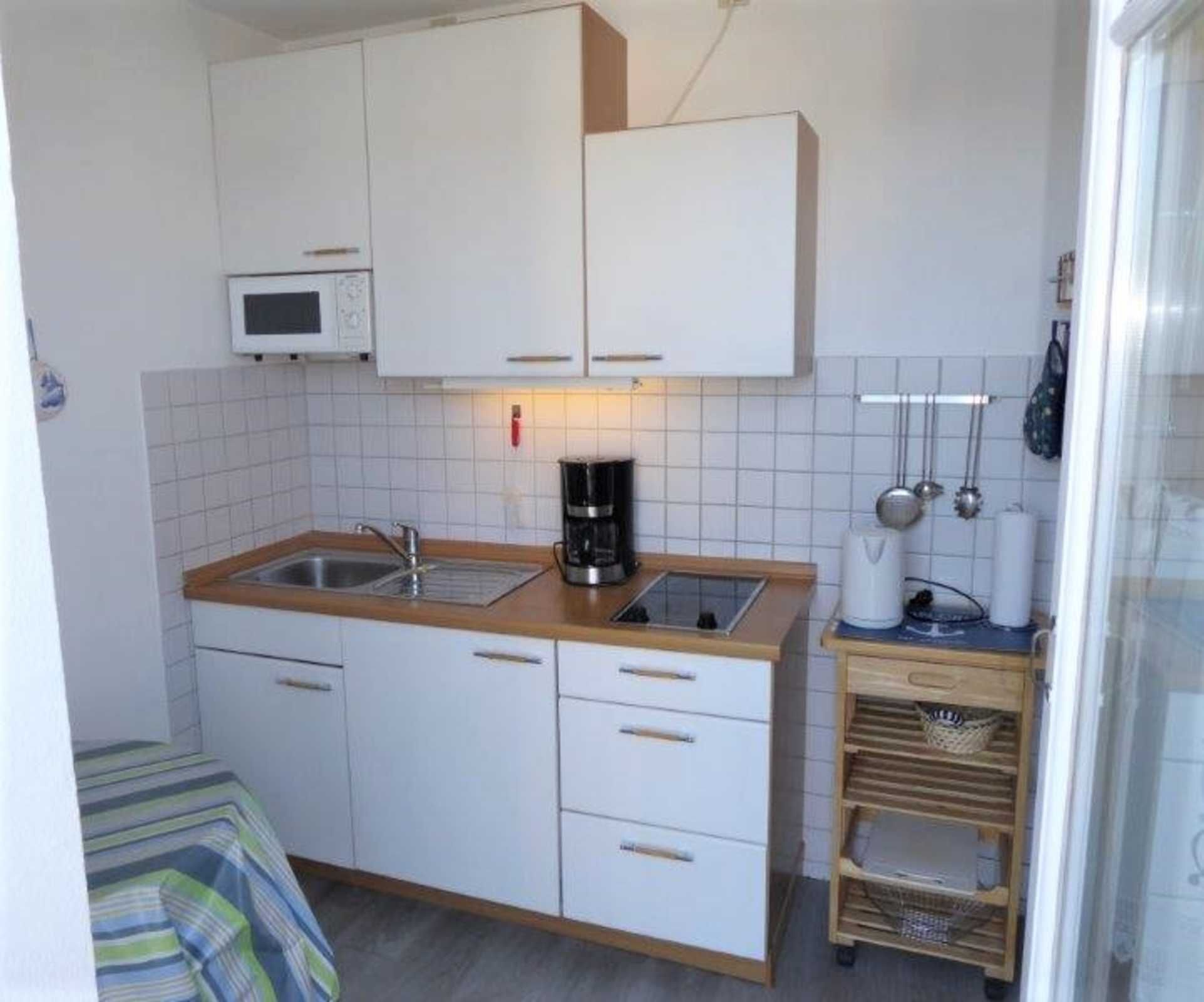 - Küche - 2 Kochplatten, Mikrowelle und Kühlschrank
