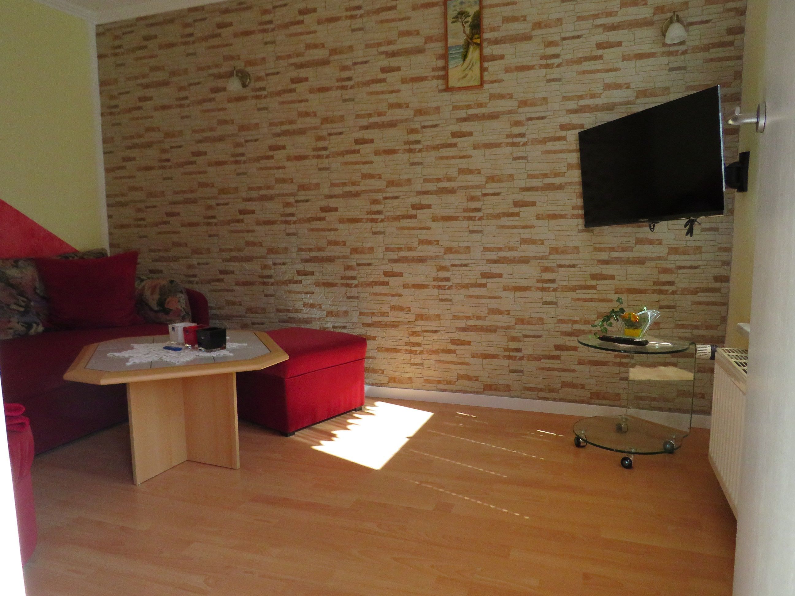Strom, Wasser und Heizung inclusive, Bettwäsche inclusive, Nichtraucherwohnung, Haustiere nicht möglich, überdachte Terrasse in ruhiger Lage mit Sitzmöbeln, Sonnenschirm und Grill, viel Platz im Freien zum Spielen für Kinder, PKW-Carport
