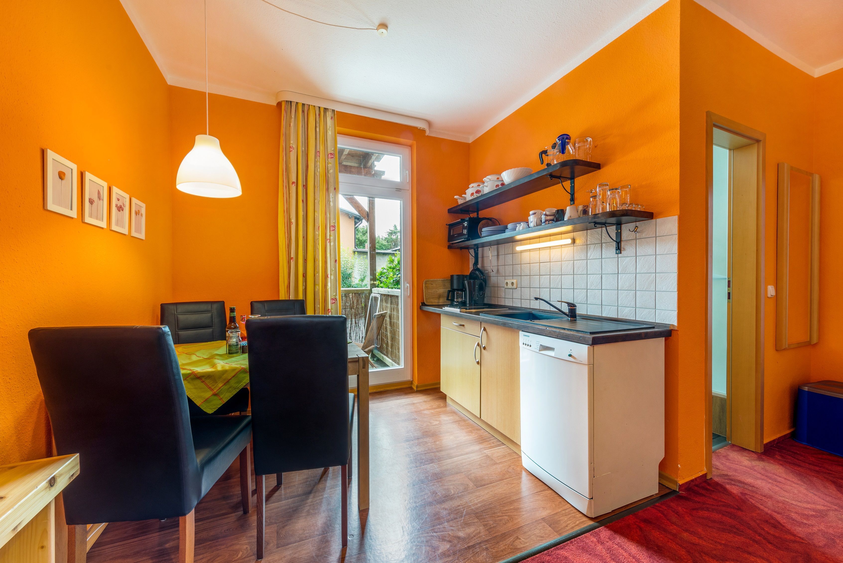 Dieses Ferienappartement erreichen Sie über den Hintereingang und liegt im Erdgeschoss. Sie ist ca. 35 qm groß, bietet Platz für maximal 4 Erwachsene und wurde modern eingerichtet. Es handelt sich um ein 2-Raum-Appartement.