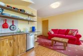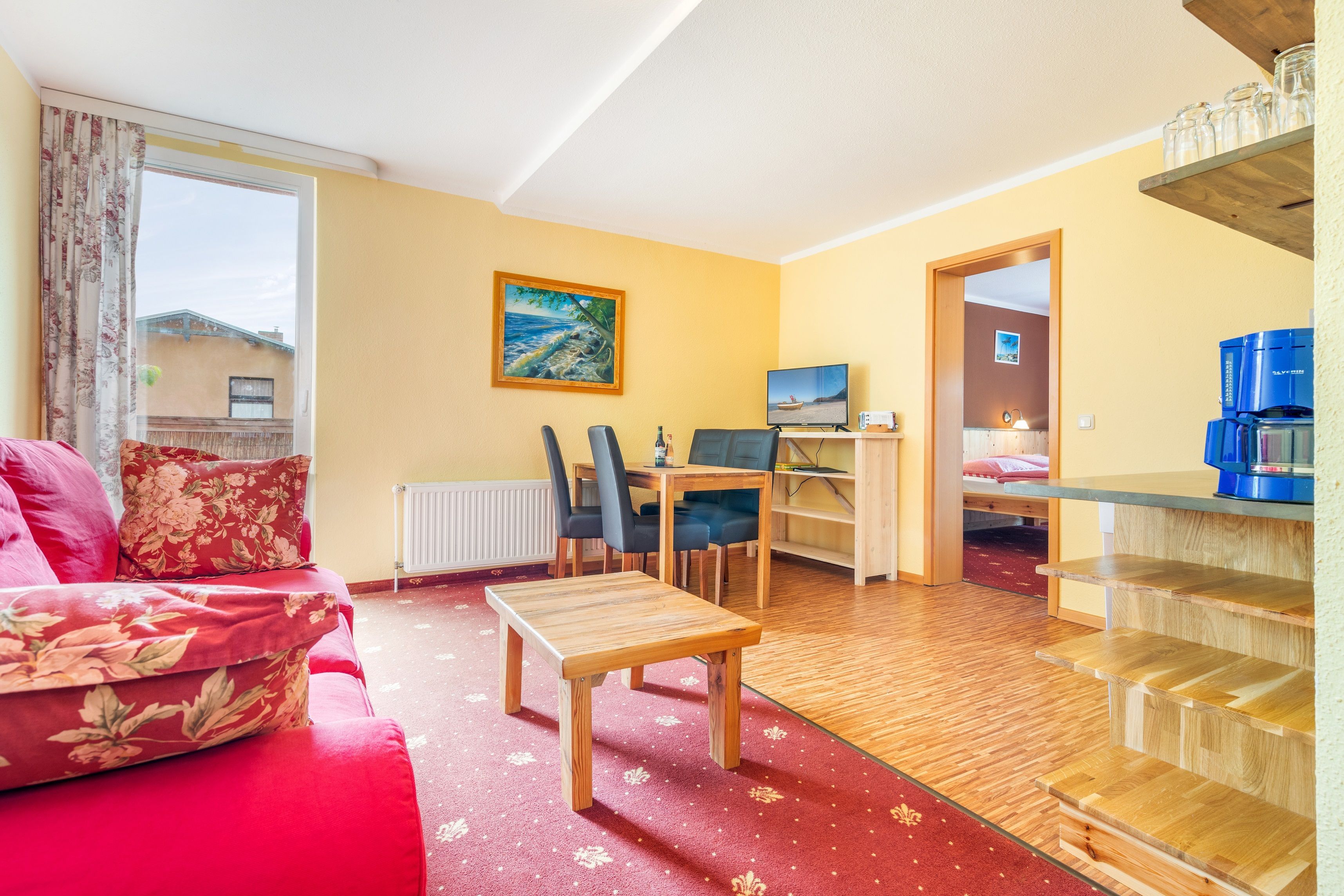 Dieses Ferienappartement erreichen Sie über den Hintereingang und es liegt im Obergeschoss. Sie ist ca. 35 qm groß, bietet Platz für maximal 4 Erwachsene und wurde modern eingerichtet. Es handelt sich um ein 2-Raum-Appartement.