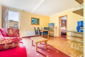 Dieses Appartement verfügt über einen Balkon mit Gartenmöbeln. Die Fenster gehen zum Parkplatz bzw. zur Gemeinschaftsterrasse raus.