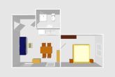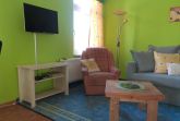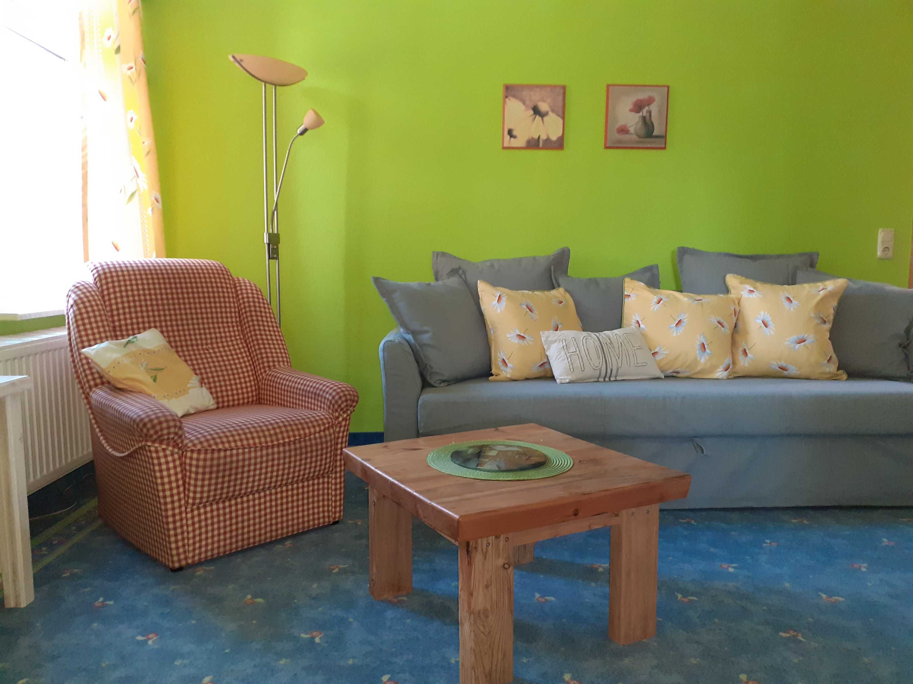 2-4 Pers.: 2-Zimmer-Wohnung mit 37 qm Wohnfläche, 1. Etage. Wohn-/Essraum mit Couchgarnitur (Ausziehcouch 2 Pers.), Esstisch, Küchenzeile (2 P. E-Herd, Spülmaschine, Minibackofen, Kaffeemaschine, Wasserkocher, 8-Set-Ess-Geschirr und Besteck, kleine Auswahl an Gläsern, kleine Topfsammlung, ein paar kleine Küchenhelfer --- Grundausstattung!!!)). Doppelbett, Couchgarnitur (Ausziehcouch 2 Personen). Bad/WC.