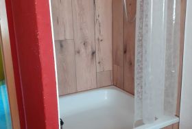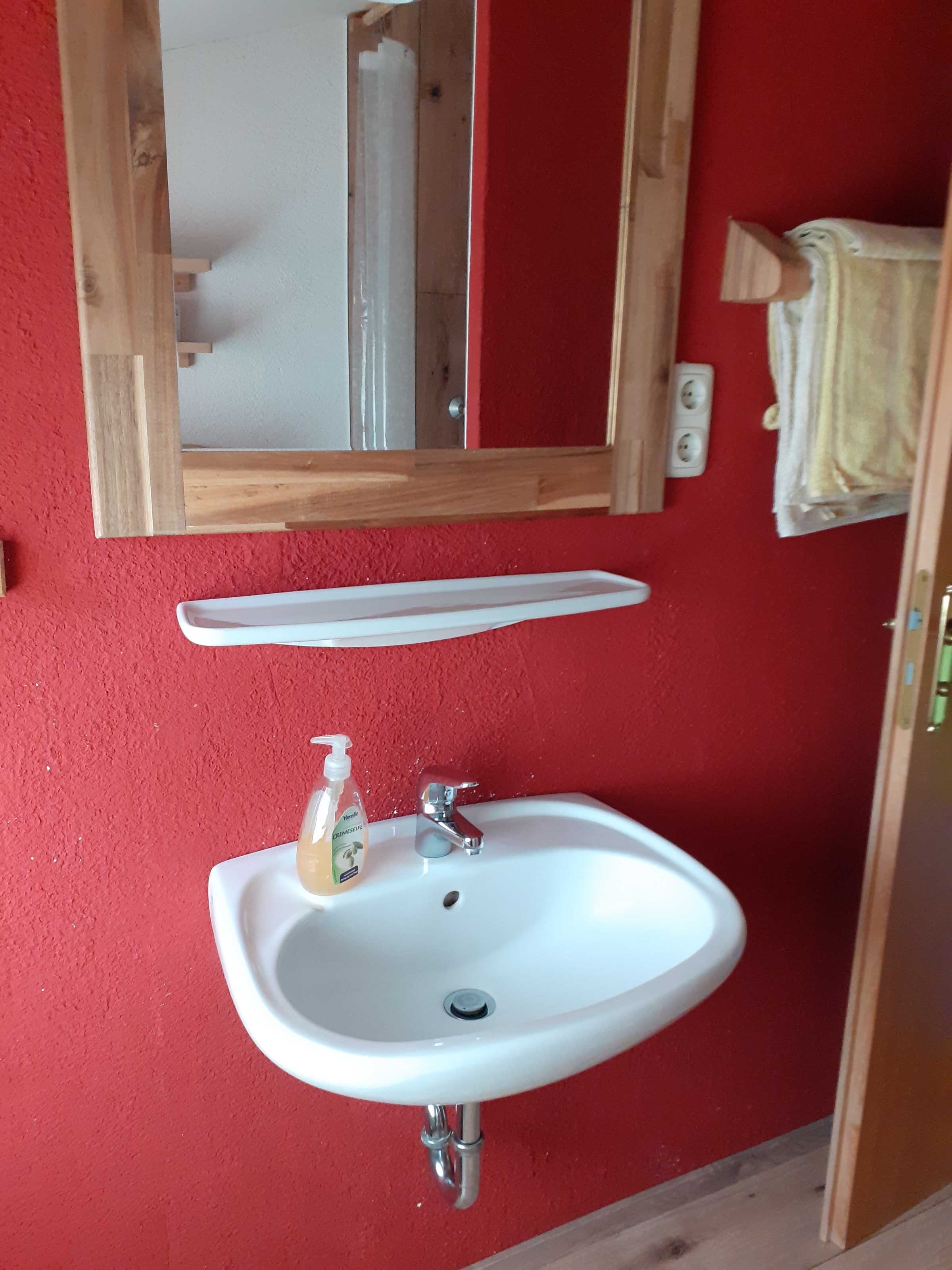 Das Bad ist mit Dusche, WC, Fön und Waschtisch ausgestattet.