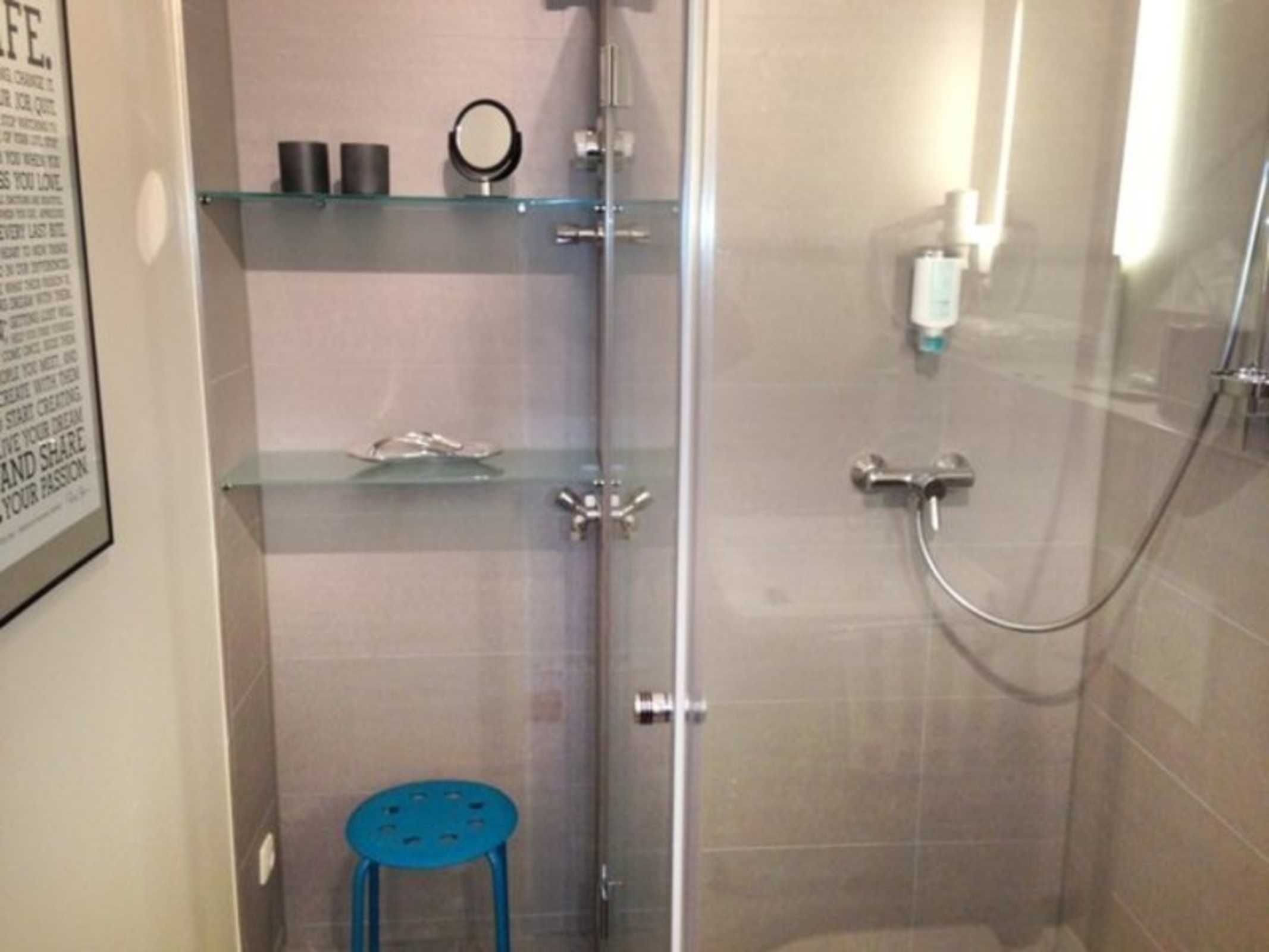 Die lichtdurchflutete Erdgeschoss-Wohnung mit Eichenparkett verfügt über einen angenehmen Grundriss mit Eingangsbereich, ein geräumiges Schlafzimmer mit Boxspring-Betten und elektr. Rolläden, eine begehbare Kleiderkammer, ein Badezimmer mit bodengleicher Dusche, eine offene Küche mit Essplatz für max. 4 Personen und ein Wohnzimmer (inkl. Schlafsofa für eine 3. bis 4. Person) mit großen Flügeltüren zur möblierten Terrasse.