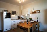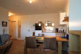 Das Wohnzimmer bietet ein bequemes Lederschlafsofa, einen Korbsessel, den Couchtisch sowie ein Flatscreen-TV mit BlueRay Player und Mikroanlage. Der Küchen- und Essbereich mit Einbauküche, Tisch und vier Stühlen bietet Ihnen viel Platz. Die Einbauküche ist mit einem Cerankochfeld, Backofen, Geschirrspüler und Kühlschrank mit Gefrierfach ausgestattet. Bei Bedarf steht eine Mikrowelle zur Verfügung.