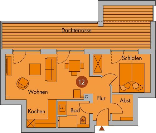 Diese für maximal zwei Erwachsene (ab 18 Jahren) modern eingerichtete Wohnung befindet sich in Südwest-Lage im zweiten Obergeschoss der Villa Sanddorn.