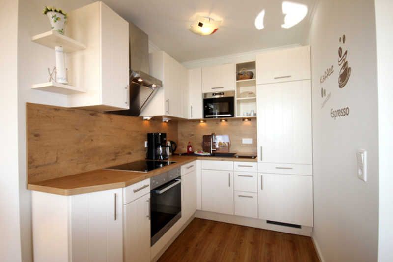 Im Wohnzimmer erwartet Sie eine bequeme L-förmige hochwertige Couch von der aus Sie sowohl auf den großen 3D-Flatscreen-TV mit BluRay-Player als auch auf die Landschaft Richtung Conventer See blicken können. Zur Unterhaltung steht eine kleine Spiele- und Büchersammlung zur Verfügung. Im offenen Küchen- und Essbereich finden Sie eine mit allen Komfort ausgestattete Einbauküche. Sie verfügt über ein 4-Zonen Cerankochfeld, Backofen, Kühlschrank mit Gefrierfach, Mikrowelle, Kaffeemaschine, Toaster und Eier- und Wasserkocher. Im Essbereich steht ein großer geschmackvoller Tisch mit 4 bequemen Swing-Stühlen, von denen man ebenfalls die Landschaft und den Fernseher gut im Blick behält. Zusätzlich gibt es einen großen geräumigen Abstellraum, in dem Koffer, Schuhe, Getränke usw. abgestellt werden können.