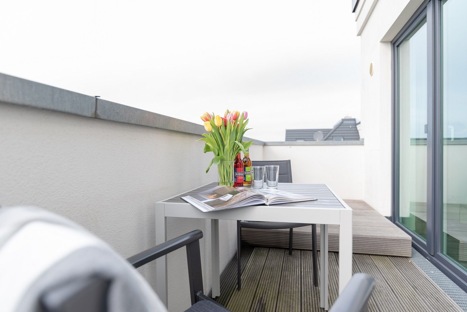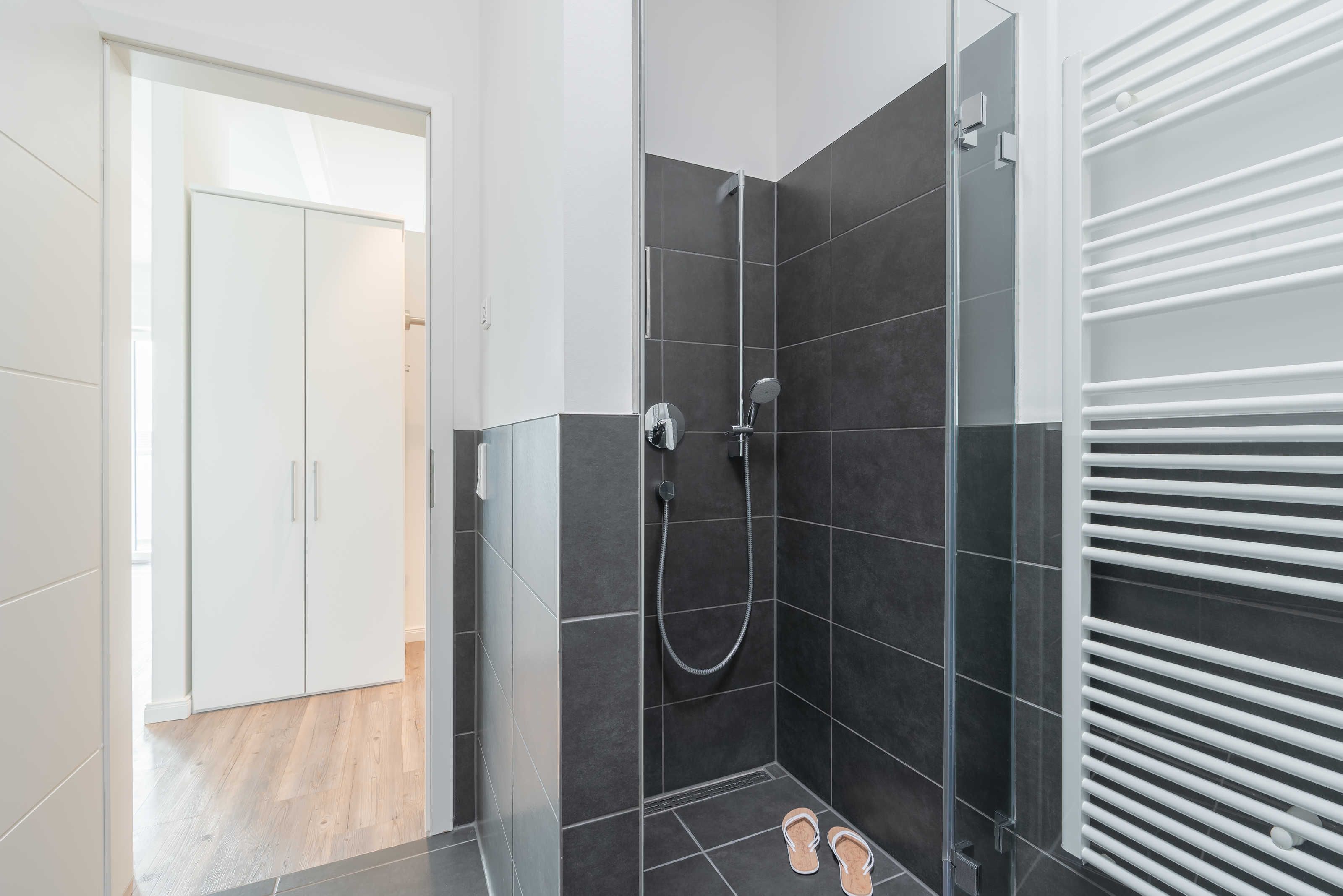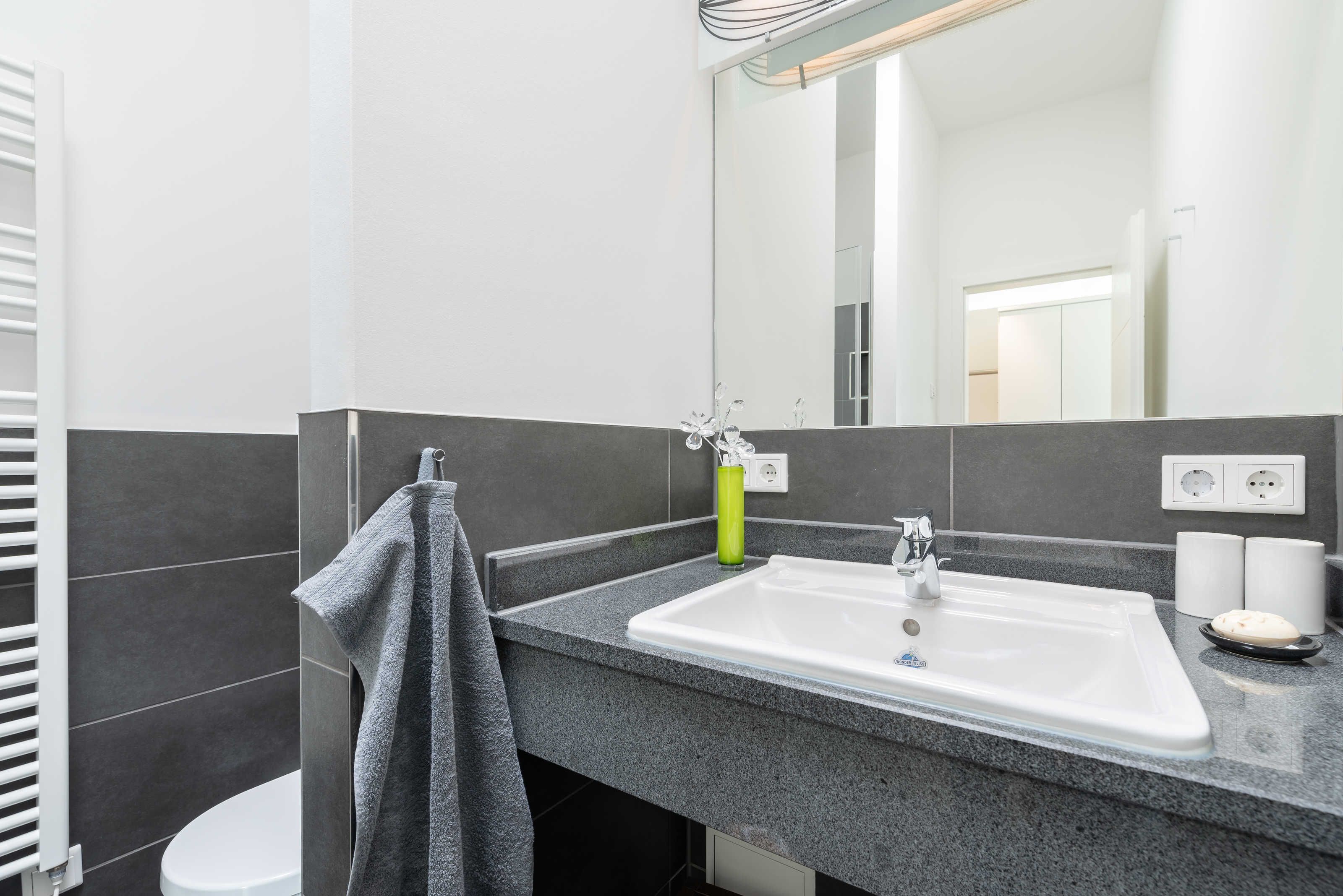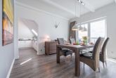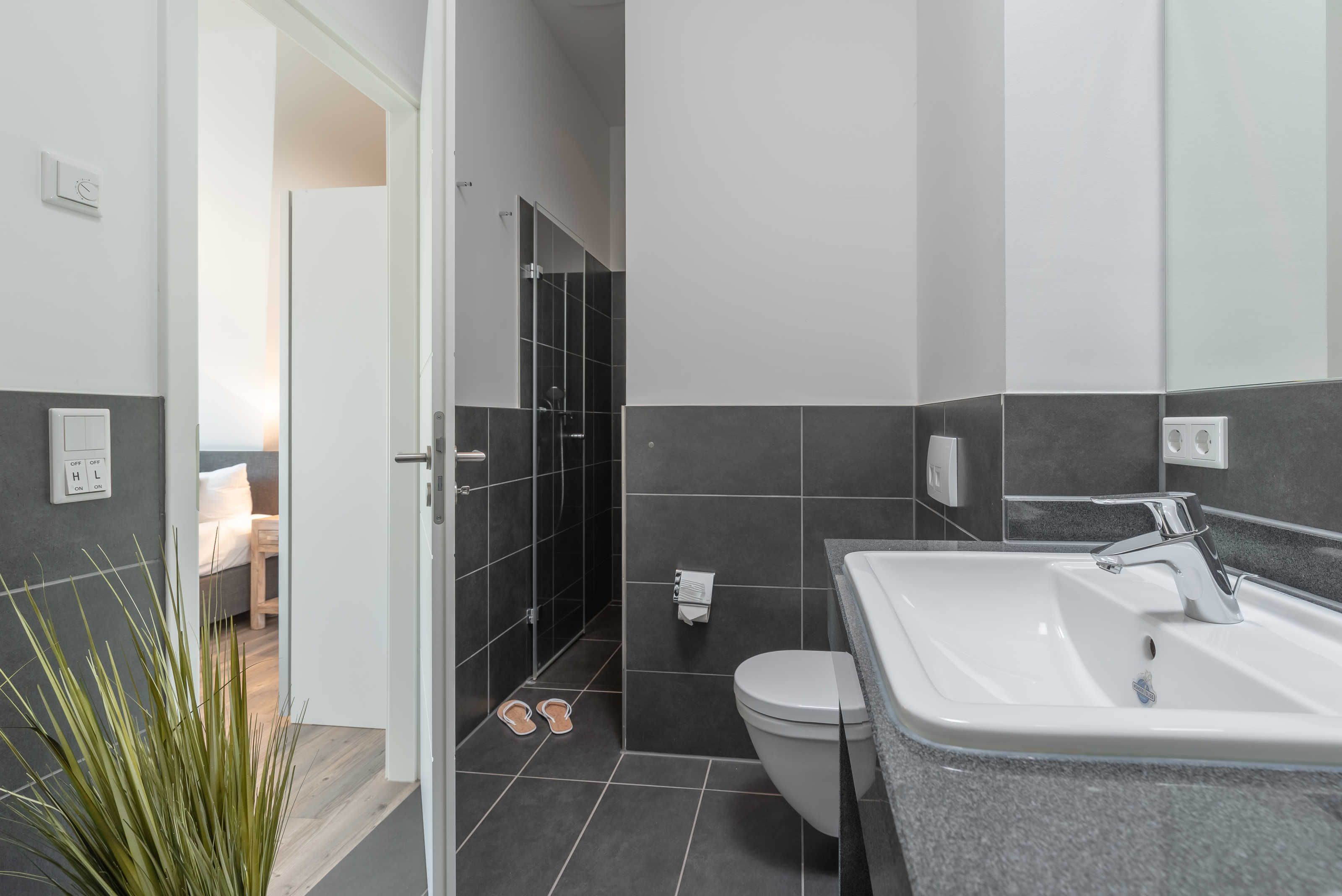Die modern und großzügig eingerichtete sonnige 3-Zimmer-Wohnung befindet sich im Dachgeschoss der Residenz Seestern. Im Wohnraum finden Sie eine zweiteilige hochwertige Couchgarnitur zum Relaxen. Zur Unterhaltung stehen Ihnen ein großer Flachbild TV, eine Hifi Anlage bluetoothfähig, einem BluRay-Player sowie DVD´s, CD´s und eine Spielesammlung zur Verfügung. Der offene Essbereich verfügt über einen großen Tisch mit vier Stühlen. Die separate großzügige Küche ist mit einer modernen Einbauküche mit Geschirrspüler, Kühlschrank mit Gefrierfach, Backofen mit Cerankochfeld und Mikrowelle ausgestattet. Neben Kaffeemaschine, Wasserkocher und Toaster ist auch eine Tchibo - Cafissimo Kapselmaschine vorhanden. Das modern eingerichtete Schlafzimmer mit dem großzügigen Boxspringbett (2,00 m x 1,80 m) verfügt ebenso über einen große Flachbild TV, einen geräumigen Schrank und eine Kommode. Sie haben direkten Zugang zum großzügigen Duschbad. Im zweiten Schlafzimmer stehen zwei Einzelbetten (2,00 m x 0,90 m) sowie ein kleiner Schrank. Das zweite Duschbad ist vom Flur aus zu betreten. Beide Duschbäder haben eine bodengleiche Dusche und einen großen Waschtisch mit Spiegel. Es gibt außerdem eine große Abstellkammer für Koffer und Taschen. Der große Süd-Balkon lädt zum Verweilen ein. Es erwartet Sie ein großer Esstisch mit vier Stühlen und Lounge-Möbeln zum Relaxen. Von beiden Balkonen können Sie den weiten Blick auf das Meer genießen.