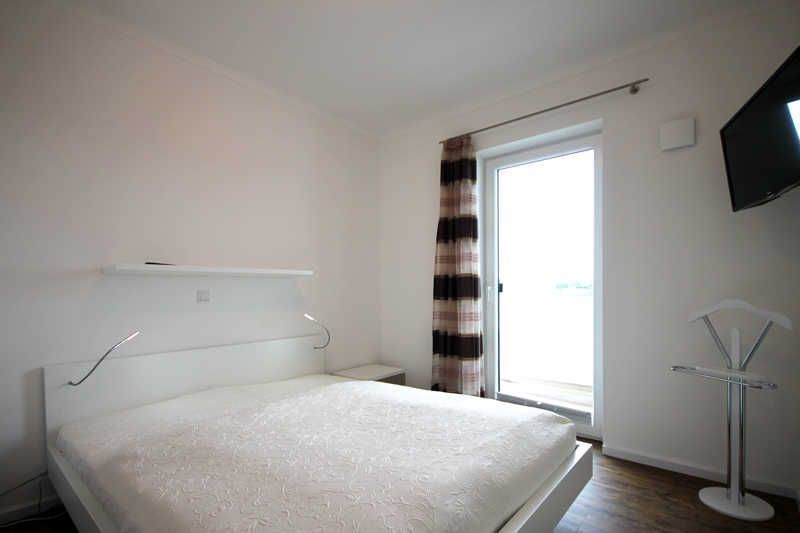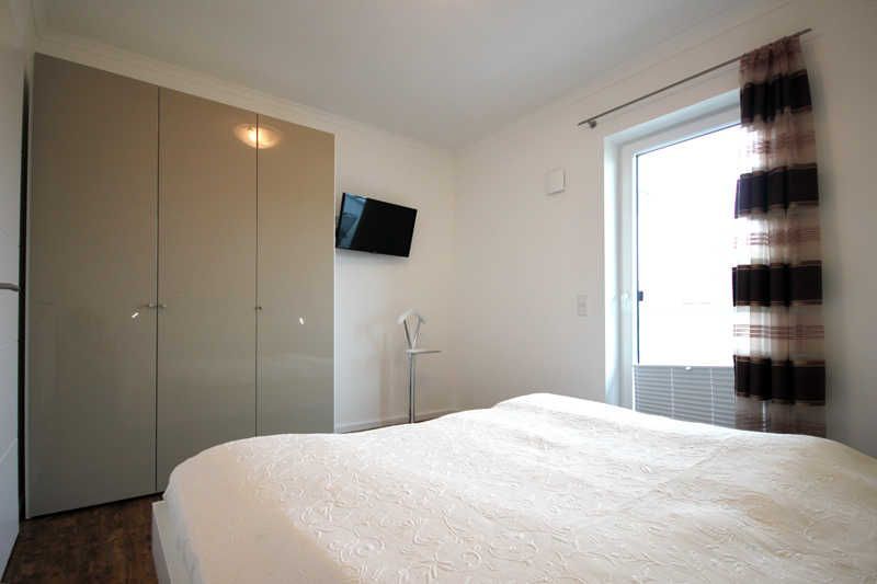 In den zwei Schlafräumen finden Sie jeweils ein gemütliches Doppelbett und einen Flatscreen-TV. Im ersten Schlafzimmer befindet sich ein dreitüriger und im zweiten Schlafzimmer ein eintüriger Kleiderschrank. Im Wohnraum bieten sich die große, L-förmige Couch sowie der Sessel zum Relaxen an. Zur Unterhaltung stehen Ihnen ein großer TV-Flachbildschirm, eine Stereoanlage und ein BluRay-Player zur Verfügung. Im offenen Koch- und Essbereich finden Sie die Einbauküche mit Geschirrspüler, Kühlschrank mit Gefrierfach, Backofen mit Cerankochfeld und Mikrowelle sowie ein Esstisch mit vier Stühlen. Das Duschbad hat eine bodengleiche Dusche und einen großen Waschtisch mit einem Spiegel über die ganze Breite des Waschtischs. Zur Wohnung gehören auch ein Gäste-WC und ein Abstellraum.