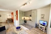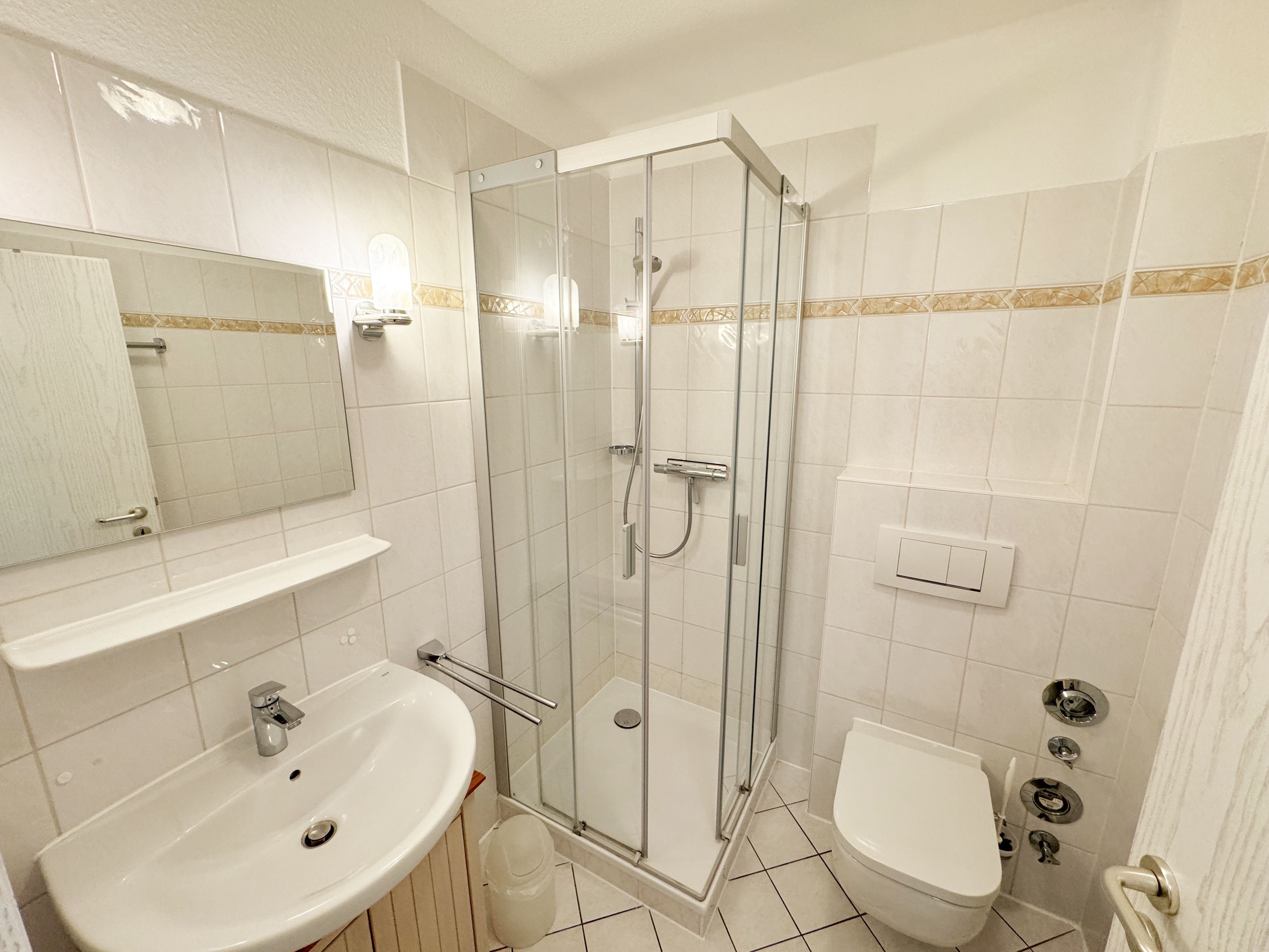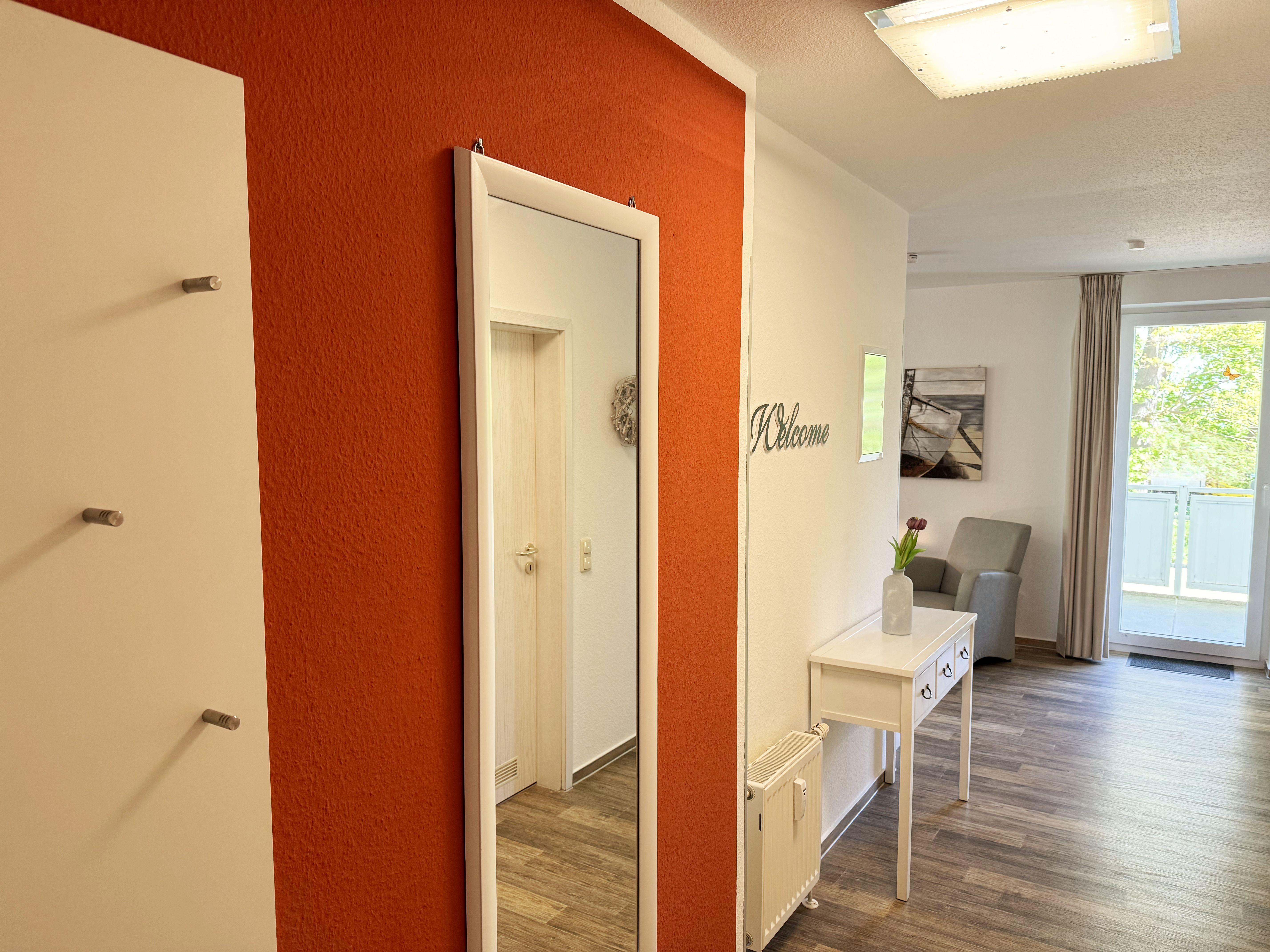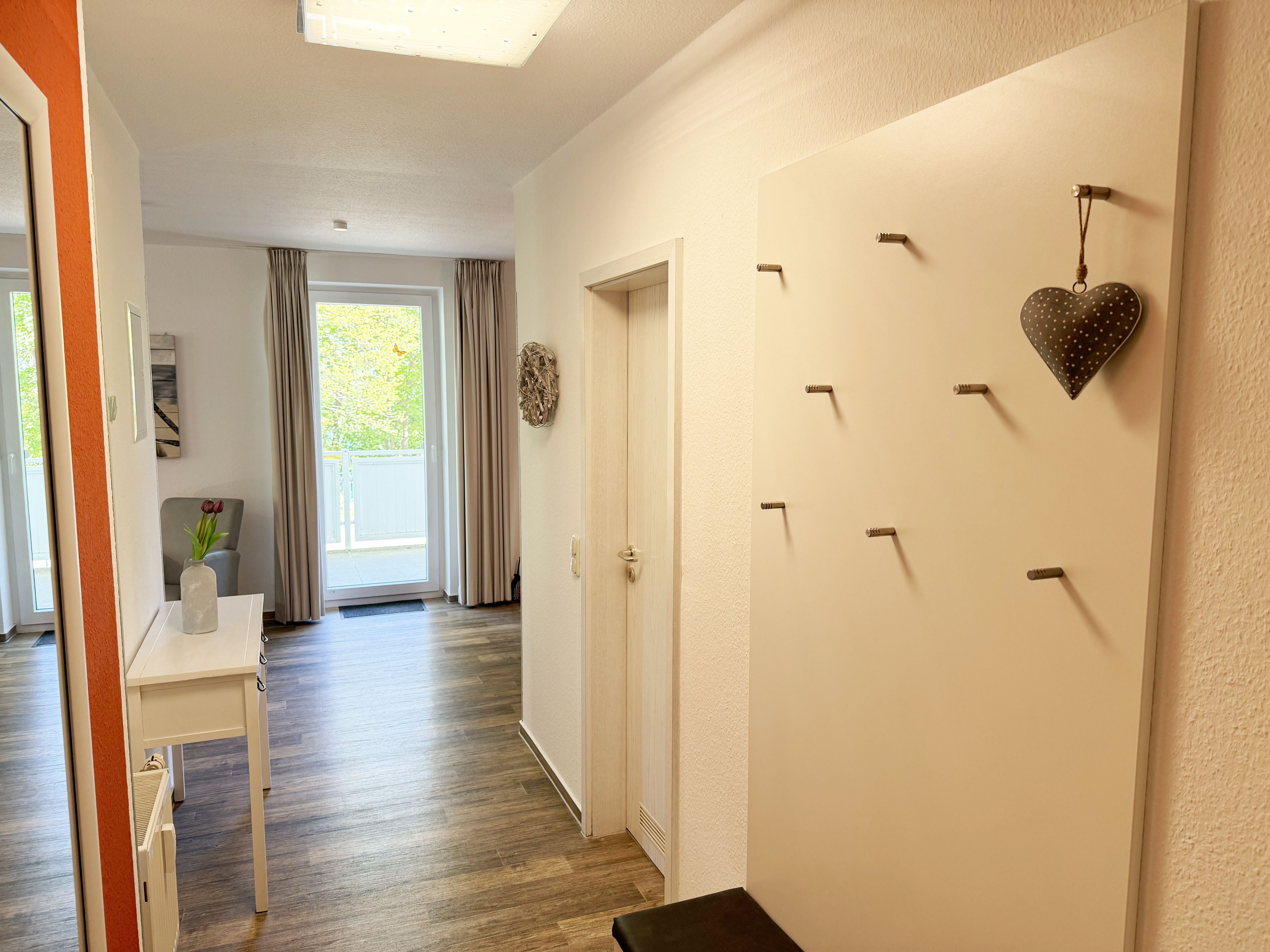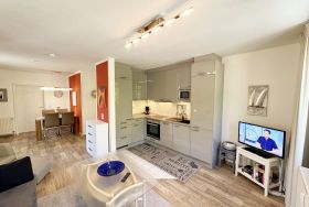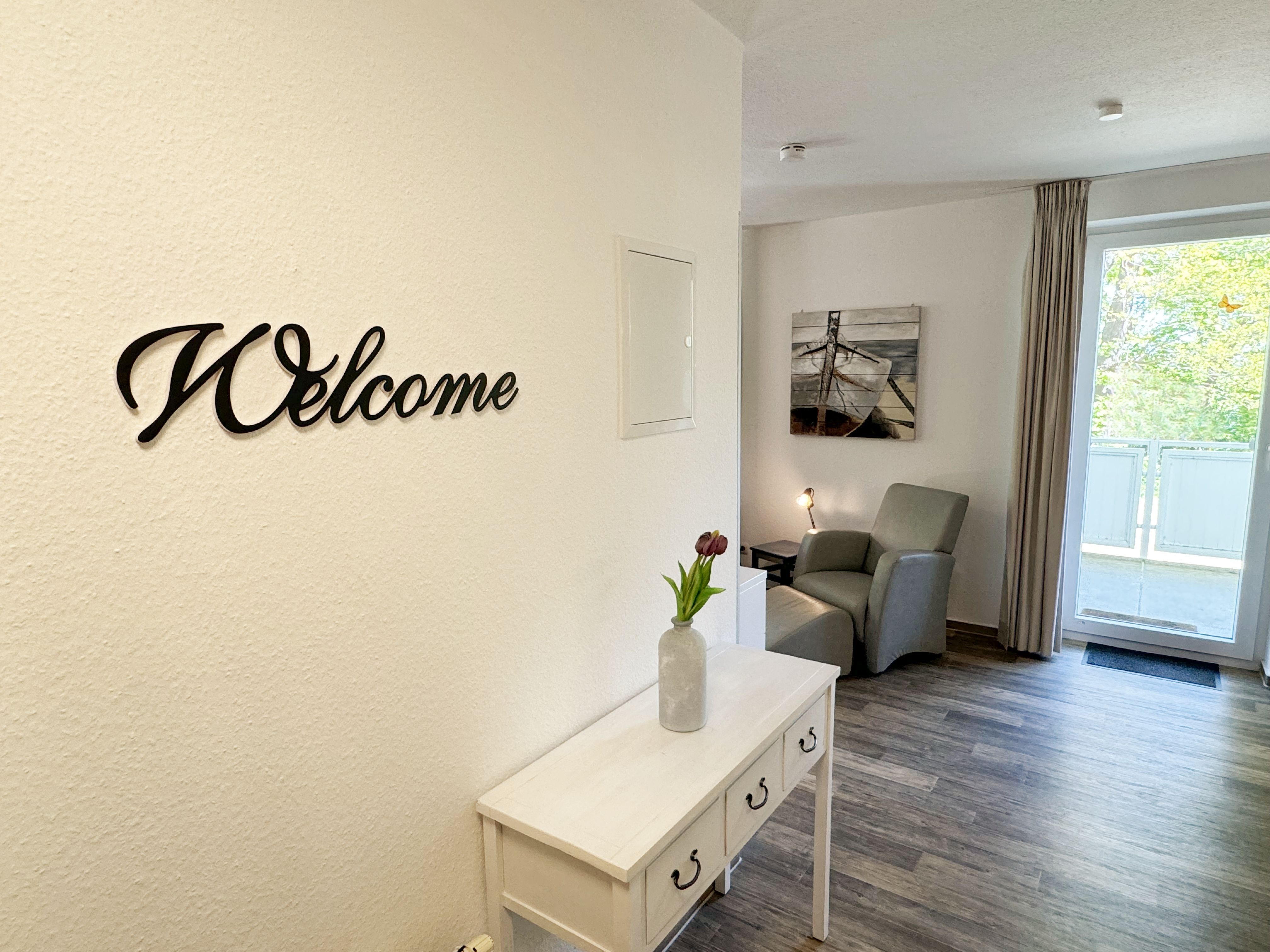 Die 2-Raumferienwohnung ist als Nichtraucher deklariert und befindet sich im 1. Obergeschoss des Hauses. Mit Ihren ca. 60 qm Wohnfläche bietet Sie ausreichend Platz für 2 - 4 Personen. Die Ferienwohnung ist komfortabel und geschmackvoll eingerichtet. Der Wohnbereich verfügt über eine Couchecke mit Ausziehfunktion (Aufbettung 3. und 4. Person, 1,80m x 2,00m), Couchtisch und Sideboard, Leselampe, mit Smart-TV, Radio + CD-Player. Die angrenzende Küchenzeile mit Esstisch ist komplett ausgestattet mit Geschirrspüler, Backofen mit 4-Zonen-Ceranfeld, Mikrowelle, Kühlschrank mit Eisfach, Kaffeemaschine, Toaster, Wasserkocher sowie diversen Küchenutensilien. Das Badezimmer umfasst eine Dusche, WC, Fön und Waschtisch. Das separate Schlafzimmer mit einem Doppelbett (0,90 x 1,80 m) mit Nachtischkonsolen und geräumigen Kleiderschrank rundet die Ferienwohnung ab. Zu den Highlights der Wohnung gehören der große überdachte Balkon und der traumhafte Blick auf die Steilküste und das Meer (im Sommer eingeschränkt durch die Blätter des alten Baumbestandes am Hang). Auch in Ihrem Urlaub brauchen Sie auf einen Internetzugang (WLAN) nicht verzichten, dieser ist vorhanden und inklusive. Ein PKW-Stellplatz ist direkt vor dem Haus. Ihre mitgebrachten oder auch vor Ort geliehenen Fahrräder können Sie im Abstellraum unterstellen. Haustiere sind in der Wohnung nicht erlaubt. Die Erstausstattung eines Wäschepaketes (komplette Bettwäsche, 1 Duschhandtuch, 1 kleines Handtuch) können Sie bis 14 Tage vor Anreise gegen einen Aufpreis dazu buchen oder durch eigene ergänzen. Ab 2 gebuchten Paketen erhalten Sie einmalig 1 Geschirrhandtuch und 1 Duschvorleger hinzu.