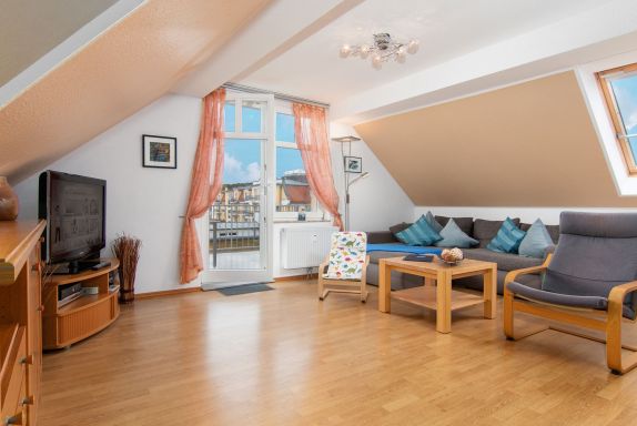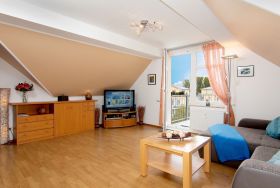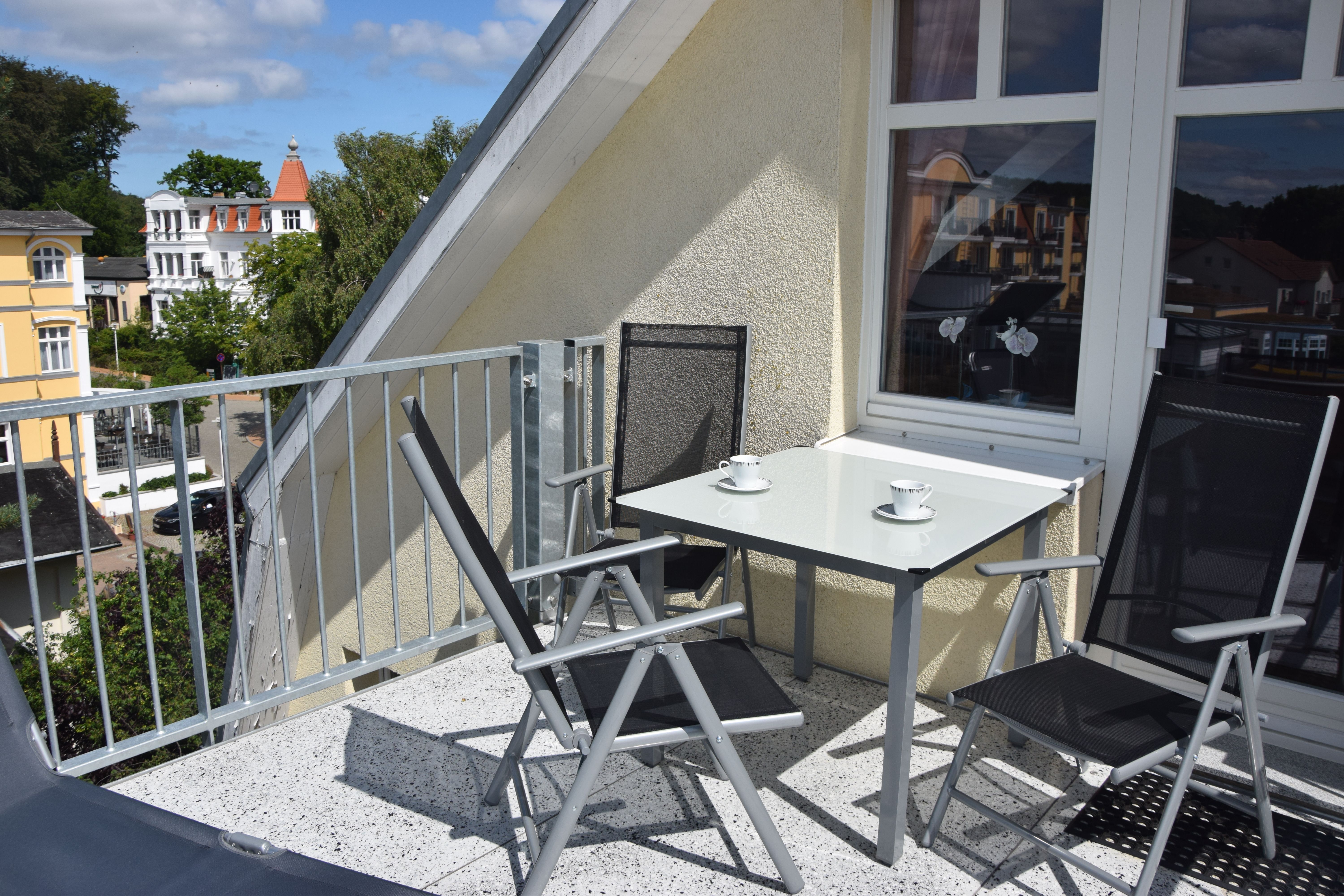 Die Ferienwohnung 10 befindet sich im Dachgeschoss der Villa Malve und bietet einen wunderschönen Blick auf die Strandpromenade und über die Dächer von Bansin.