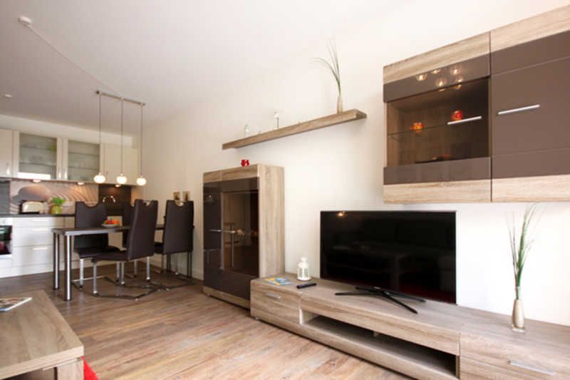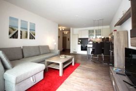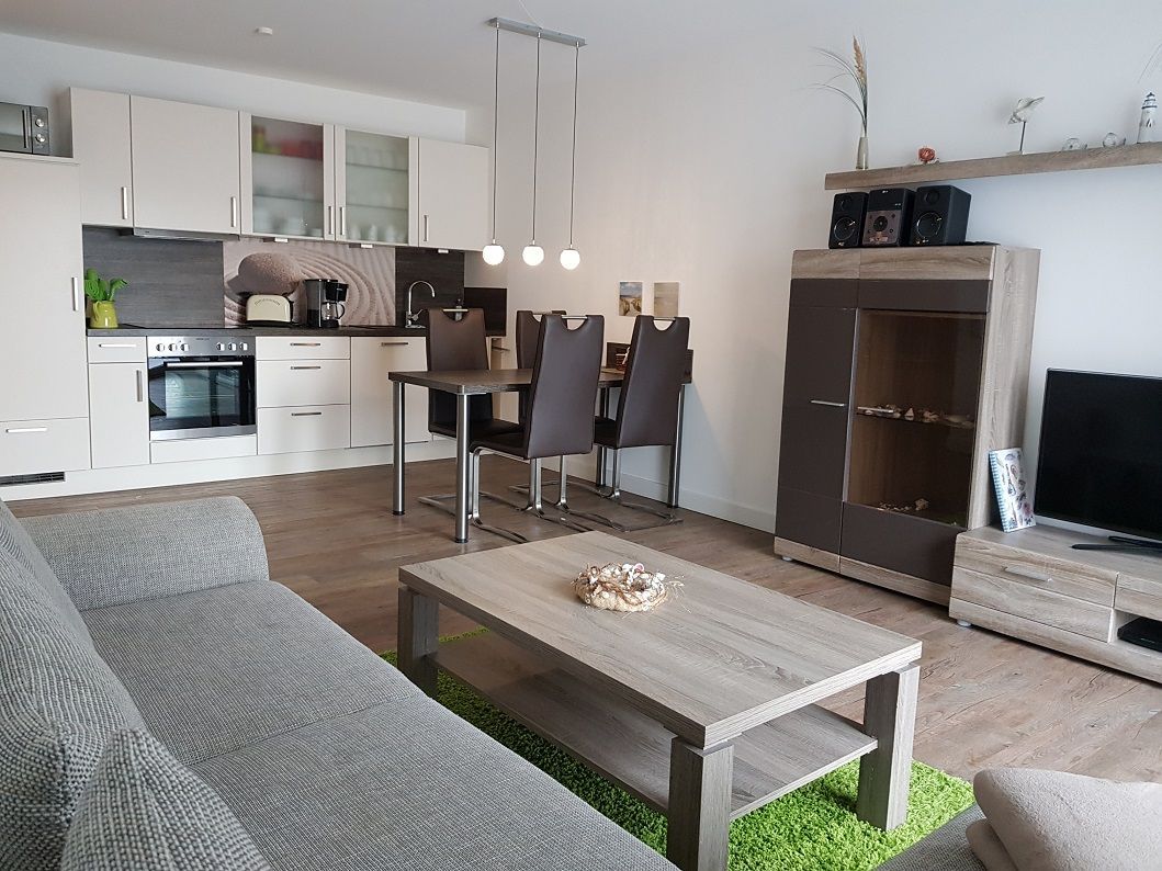 Im kombinierten Ess- und Wohnraum befindet sich ein Tisch mit vier Stühlen. Ergänzt wird die Ausstattung im Wohnbereich mit einer Schlafcouch und einem TV- Gerät. Ein DVD-Player und Radio sind ebenfalls vorhanden. In der Einbauküche finden Sie ein Cerankochfeld, Backofen, eine Mikrowelle, Geschirrspüler sowie Kühlschrank mit integriertem Gefrierfach. Der Schlafbereich wurde mit großem Doppelbett, geräumigem Kleiderschrank und einem weiteren Flatscreen-TV ausgestattet. Im eleganten Bad finden Sie eine Dusche und einen großen Waschtisch mit durchgehendem Spiegel. Auf der nach Süd-West ausgerichteten Terrasse stehen ein Tisch, zwei Stühle und zwei Hocker. Die integrierte Sauna ist vom Wohnbereich zugänglich und wird über Münzeinwurf betrieben (2,00 Euro Stücke / 4,00 Euro für 40 min). Das kostenfreie WLAN in der Unterkunft ist ausschließlich für die Verwendung von Social Media und den Austausch von Bildern mit Familie und Freunden gedacht. Die Nutzung zum Streamen von Filmen ist nicht vorgesehen. Zur Wohnung gehört ein kostenfreier Tiefgaragenplatz. Bitte beachten Sie die Durchfahrtshöhe von max. 1,90 m. Bei Überschreitung der maximalen Durchfahrtshöhe, besteht die Möglichkeit auf einen kostenpflichtigen Parkplatz in unmittelbarer Nähe auszuweichen. Der im Gebäude installierte Aufzug erleichtert den Transport der mitgebrachten Koffer. Zudem befindet sich ebenfalls im Untergeschoss ein separater abschließbarer Fahrradraum. Hier noch einige Hinweise: Es handelt sich um eine Nichtraucherwohnung. Es sind keine Haustiere erlaubt. Wäscheset, Kinderreisebett und Kinderhochstuhl können kostenpflichtig zugebucht werden. Eine Waschmaschine und ein Trockner stehen im separaten Waschraum im Erdgeschoss des Objekts zur Verfügung (gegen Gebühr / 0,50 Euro Münzen). Sichern Sie sich zusätzlich den Anspruch auf einen der begehrten Strandkörbe nur ein paar Meter entfernt von den rauschenden Wellen der Ostsee (Anfang Mai - Ende August) und buchen Sie jetzt zu besonderen Konditionen (12,00 Euro pro Tag oder 75,00 Euro pro Woche.)