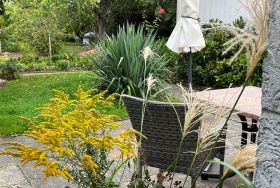 1-Zimmer-Bungalow (ca. 16 m²) mit Doppelbett (Boxspring), Esstisch mit 2 Stühlen, kleiner Küchenzeile und Dusche/WC. Nicht-Raucher. Terrasse mit Grillkamin, viel Ruhe und ein wunderschön blühender Garten.