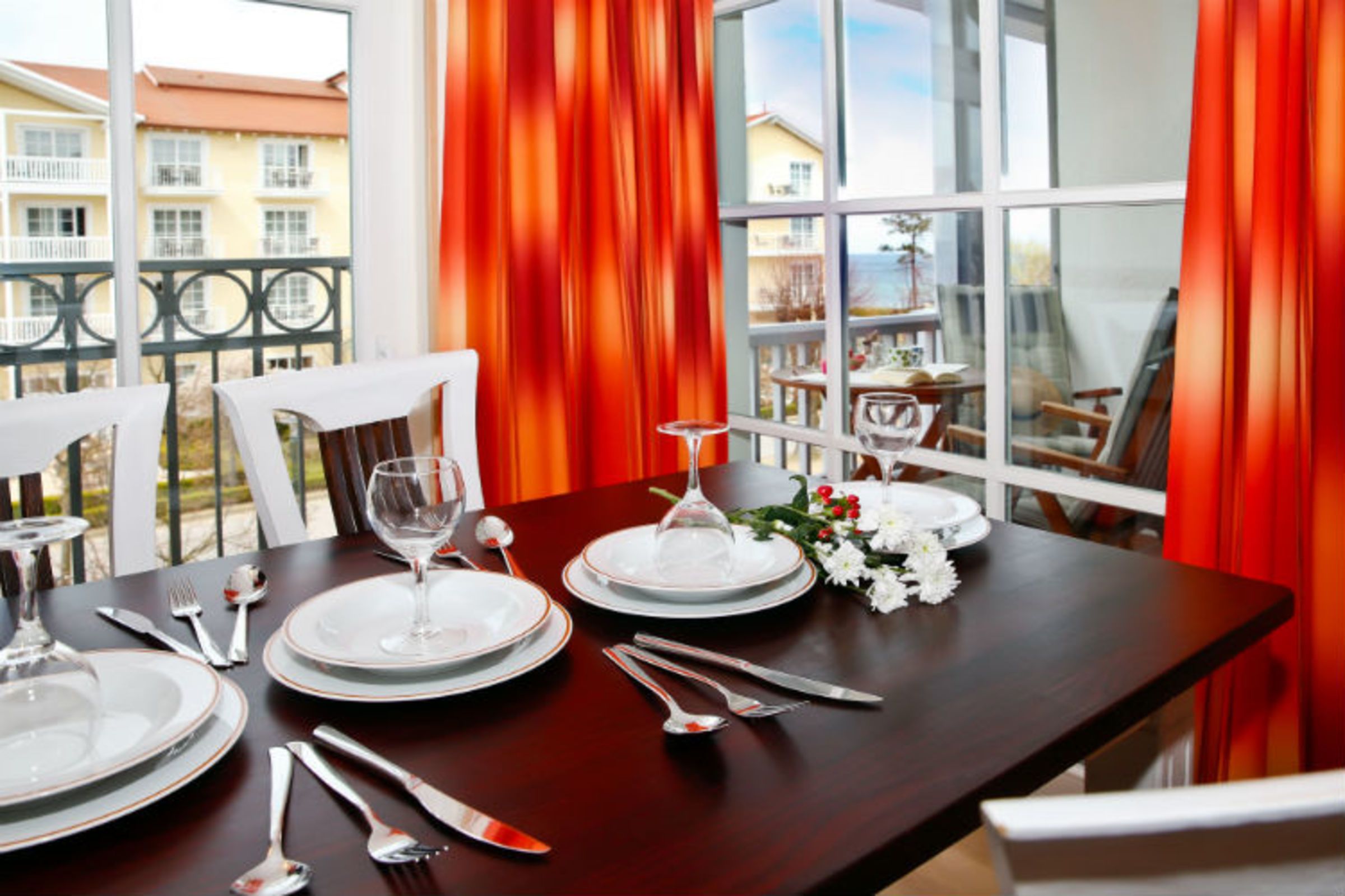 - möblierter Balkon (Westlage) mit seitlichem Meerblick