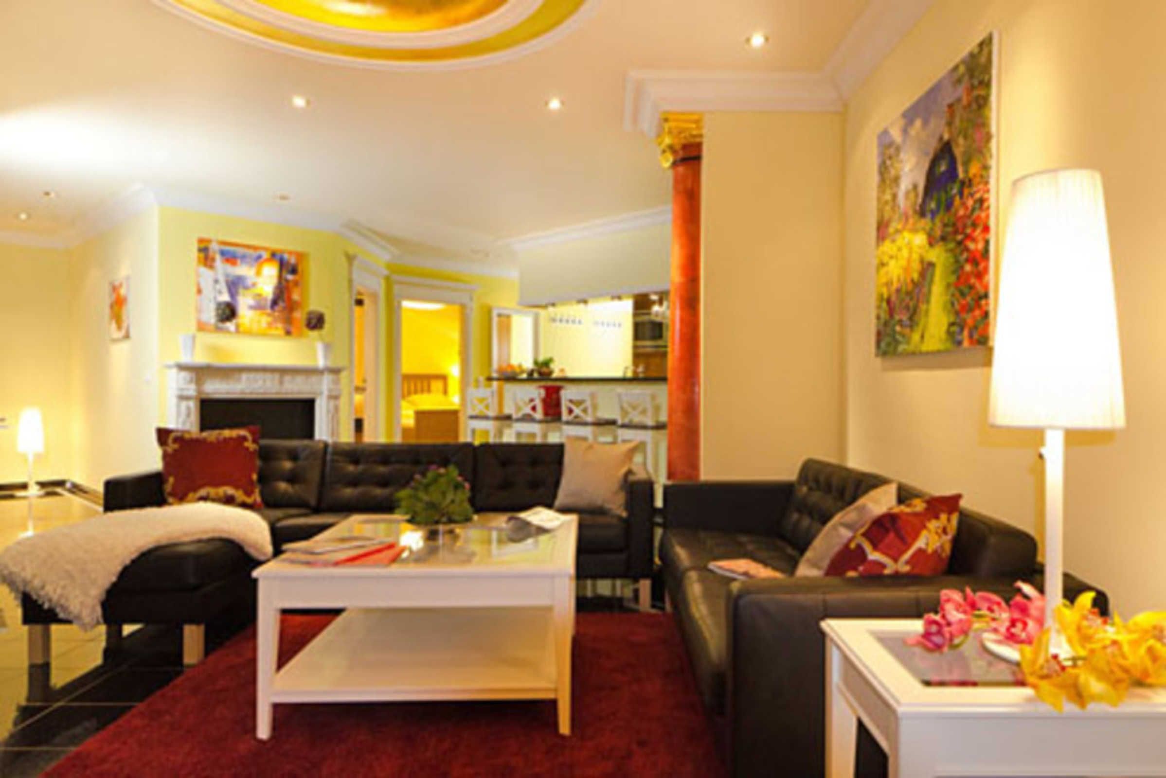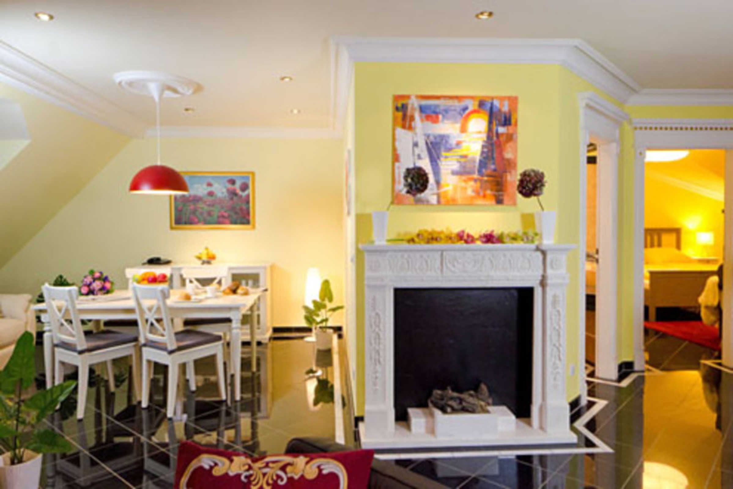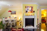 - Wohnbereich mit Schlafcouch, Ethanol-Kamin, integrierter Küche und Essplatz